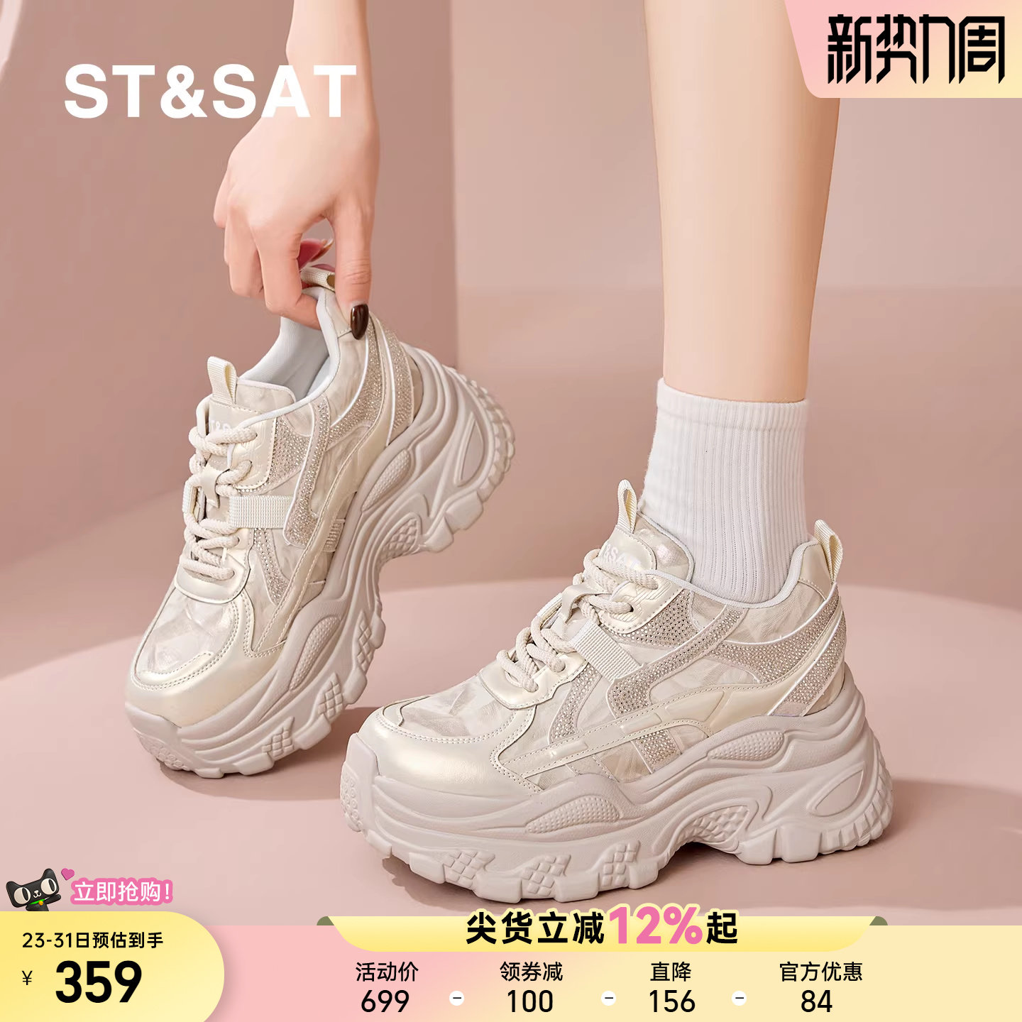 星期六金色老爹鞋女春夏季新款厚底女士休闲运动鞋百搭内增高女鞋