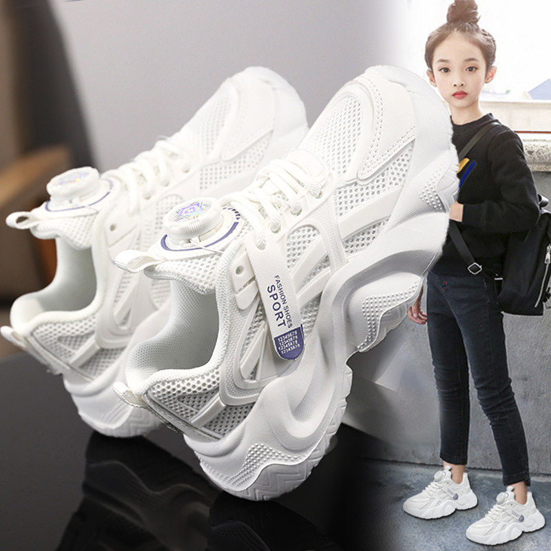 扭扭鞋女童夏季轻便减震跑步小白鞋中大童初中学生网面透气运动鞋