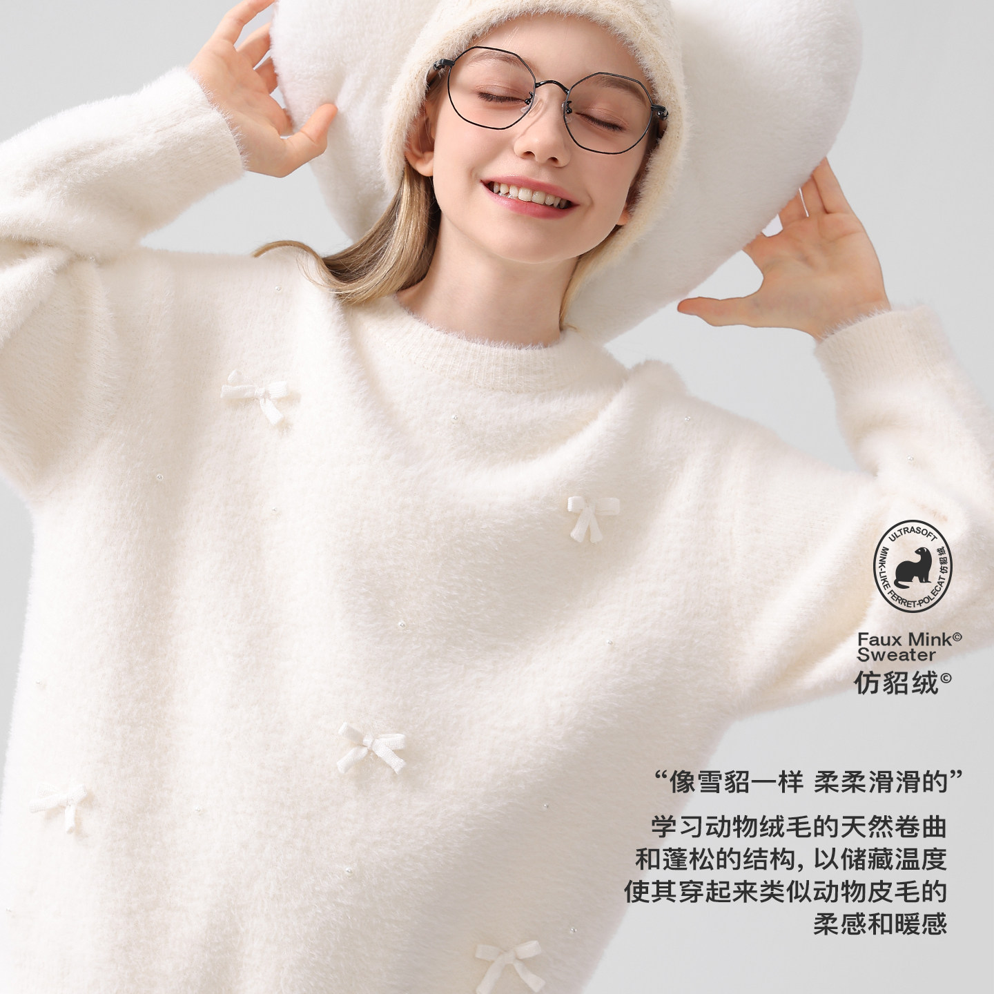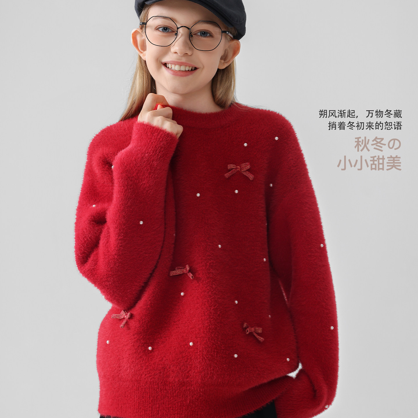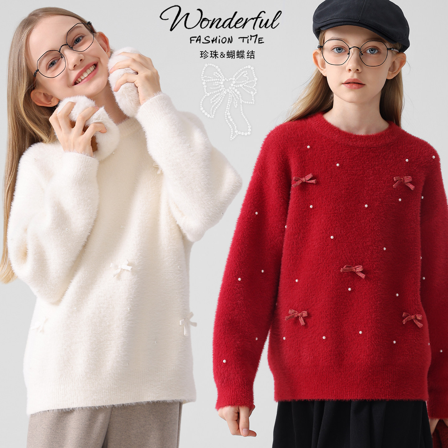 女童毛衣秋冬新款儿童针织衫大童外套青少年仿貂绒上衣女孩拜年服
