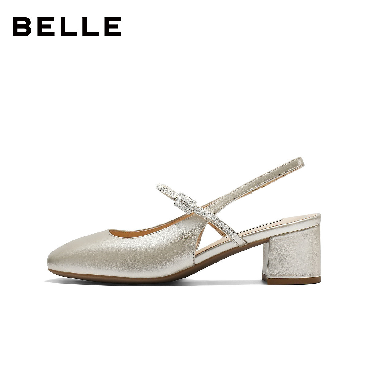 百丽真皮舒适方跟包头凉鞋女26夏新款后空包头粗高跟婚鞋子BR5B4B