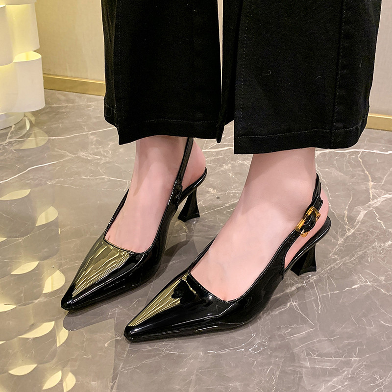 法式气质尖头凉鞋女2026年新款春夏季时尚后绊带漆皮细跟高跟鞋子