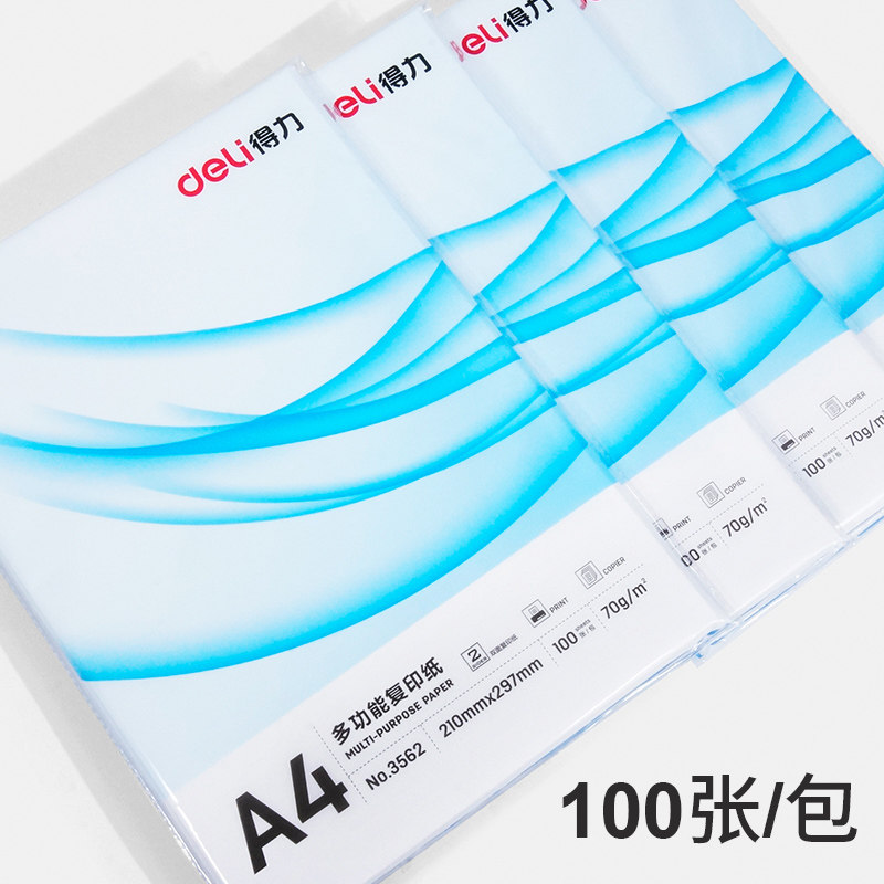 得力A4打印纸复印纸单包100张办公用品70g加厚草稿纸A3复印纸学生用deli演草纸整包a4纸白纸实惠装批发包邮