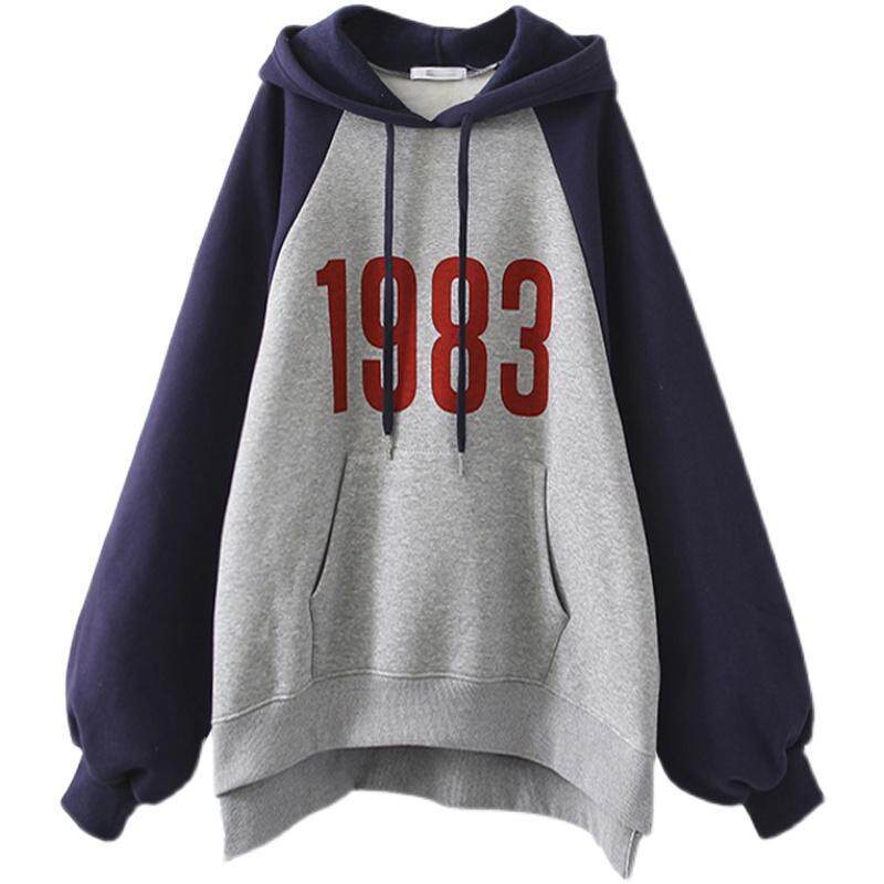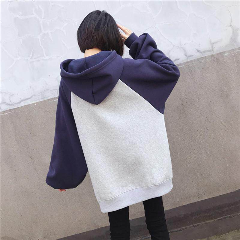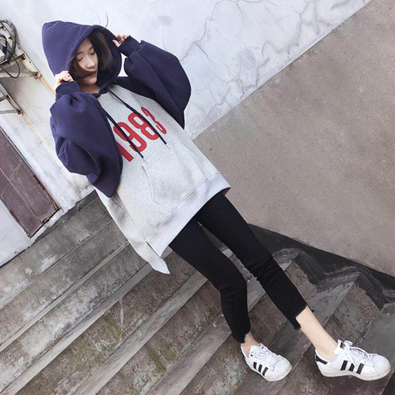 秋冬加绒加厚卫衣女连帽拼接韩版200宽松大码中长款外套胖mm300斤