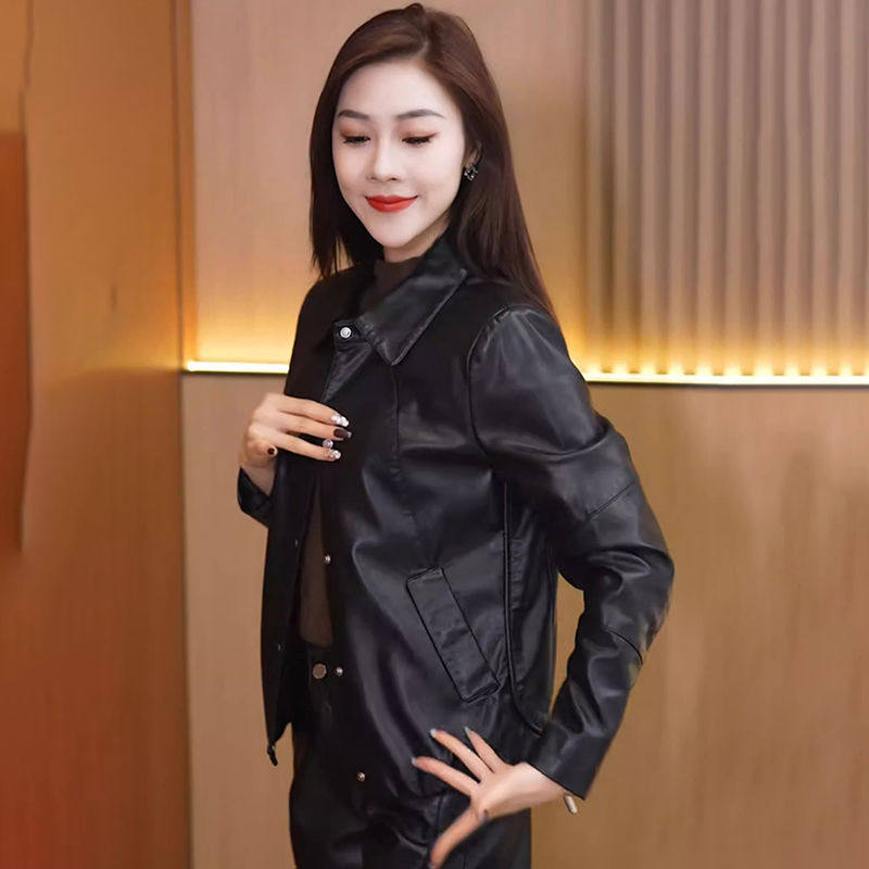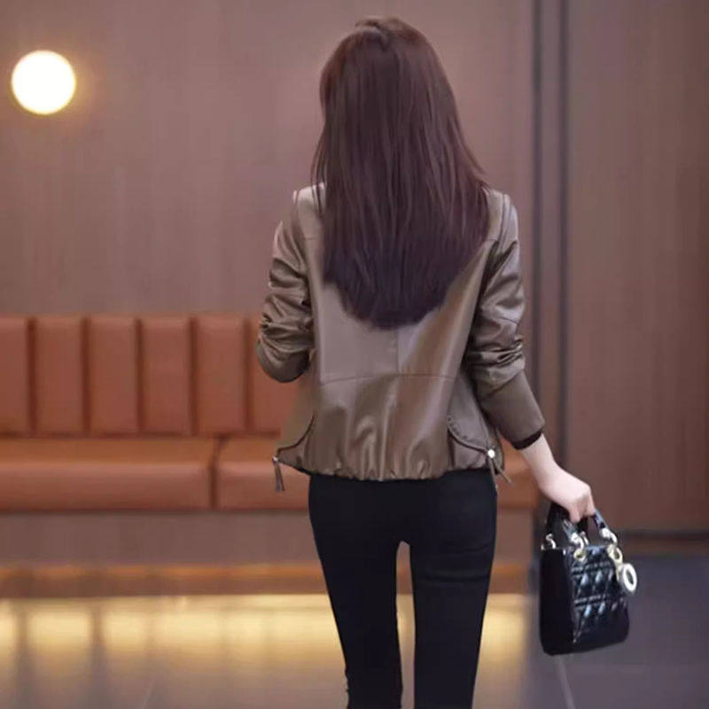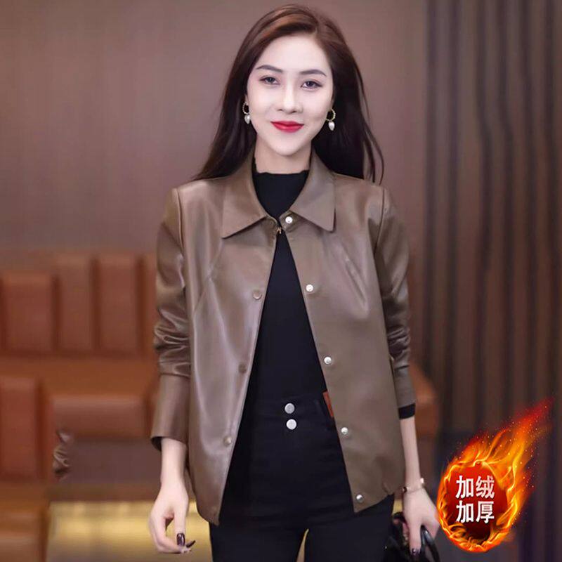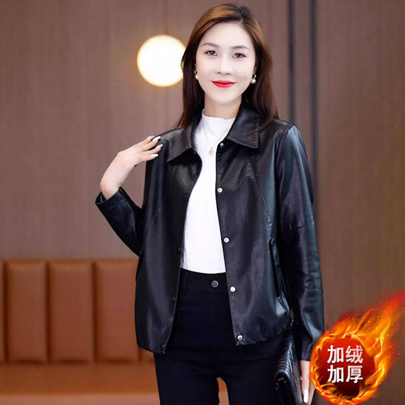 加绒皮衣外套女短款2024秋冬新款洋气百搭pu皮夹克加厚皮棉袄上衣