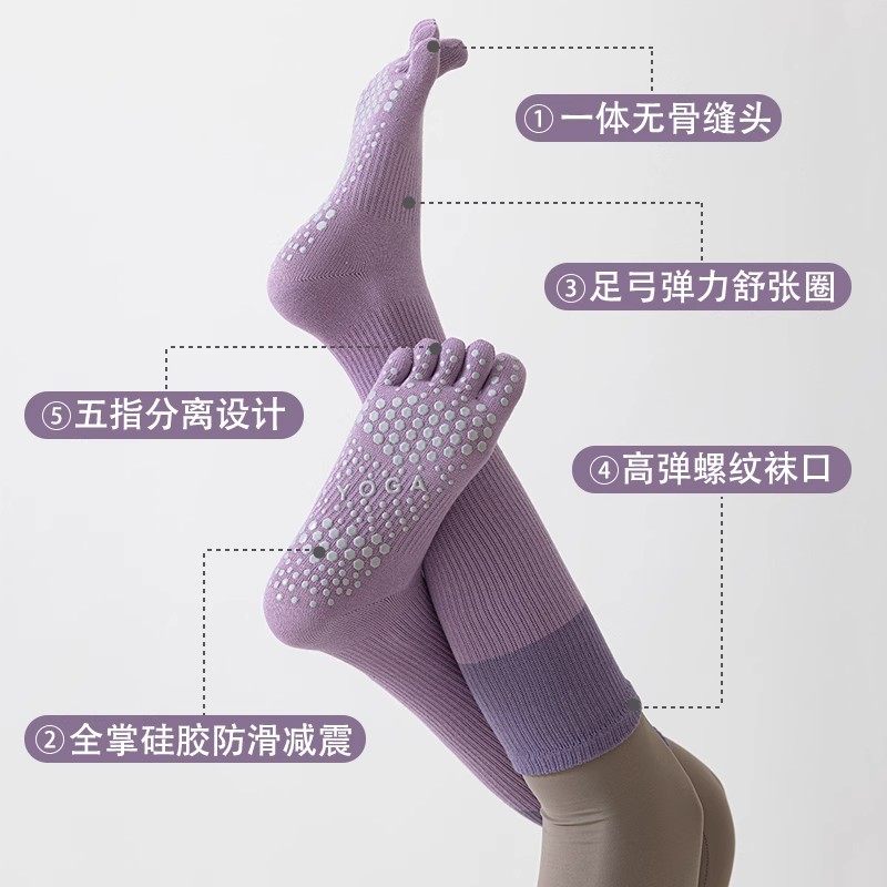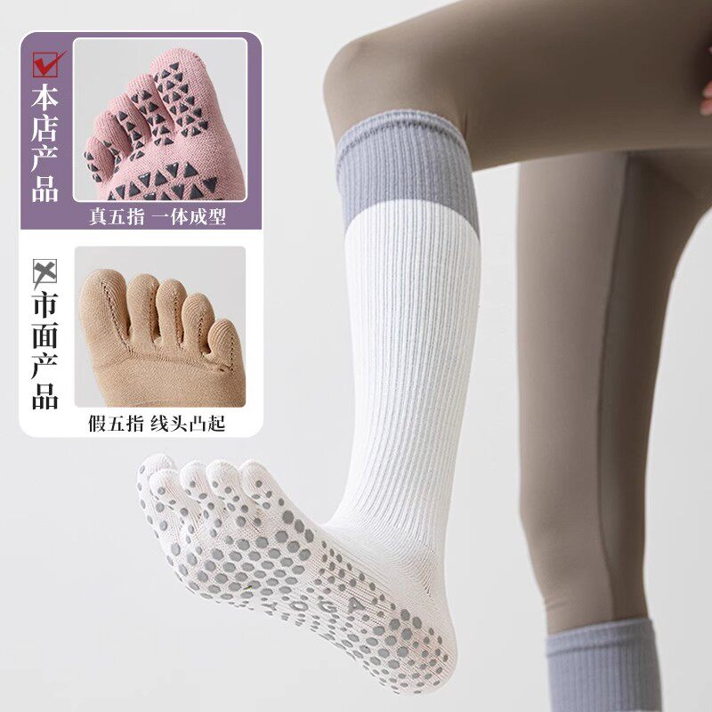 五指瑜伽袜防滑袜专业女普拉提袜压力小腿夏季跳绳健身运动长筒袜