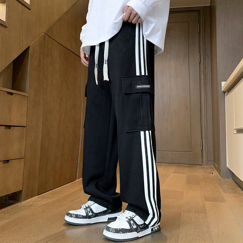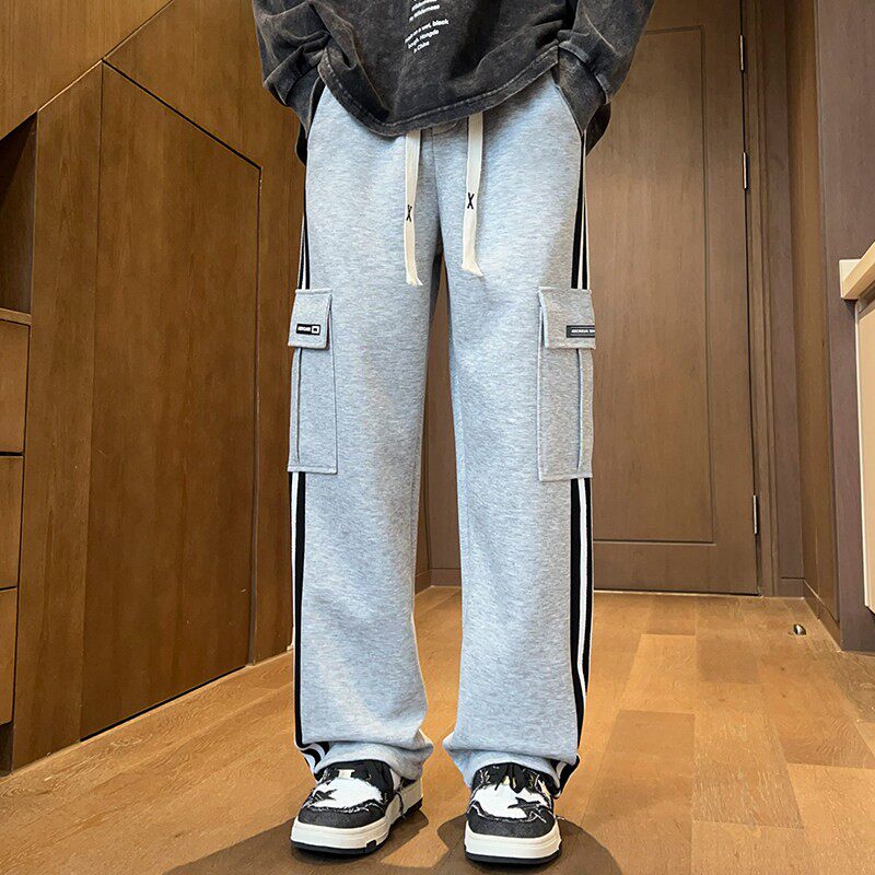 青少年秋冬酷帅裤子男生学生加绒加厚休闲运动大童工装裤直筒卫裤