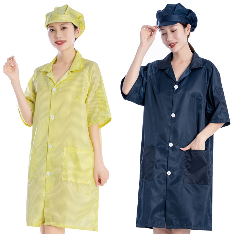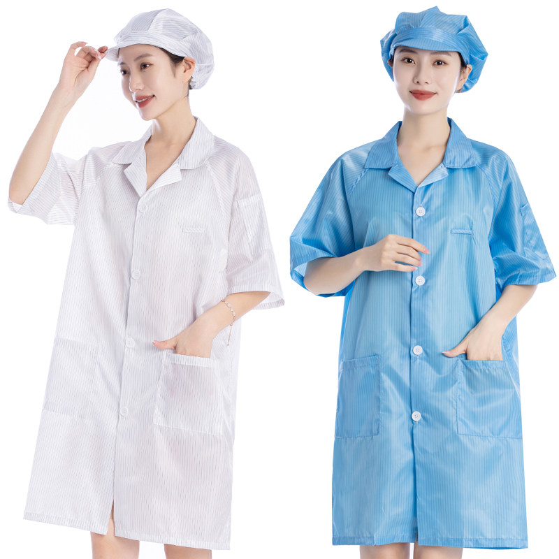 防静电工作服短袖大褂无尘服长款防尘衣夏季电子食品厂男女蓝白色