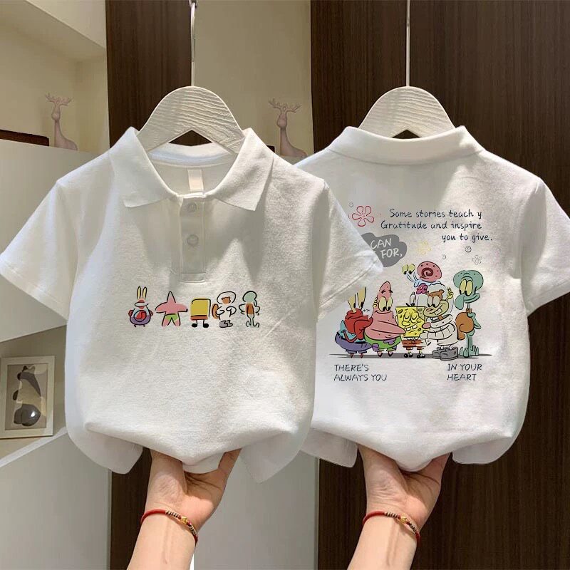 纯棉POLO领男童短袖t恤夏季新款夏装中大儿童洋气翻领白色上衣服