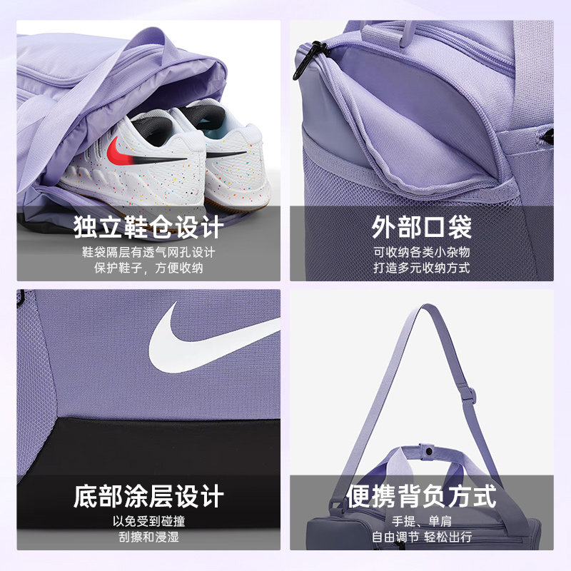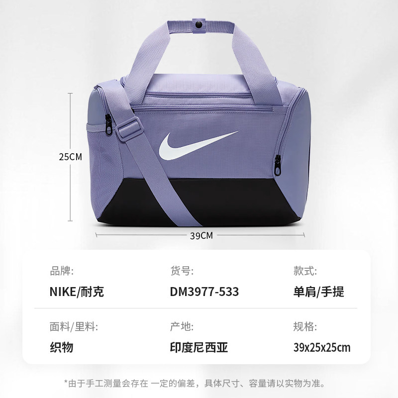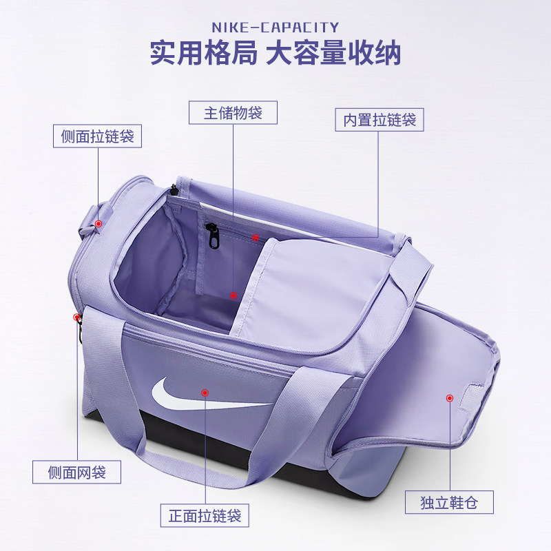Nike耐克单肩包男女运动训练包大容量健身旅行袋队包桶包DM3977