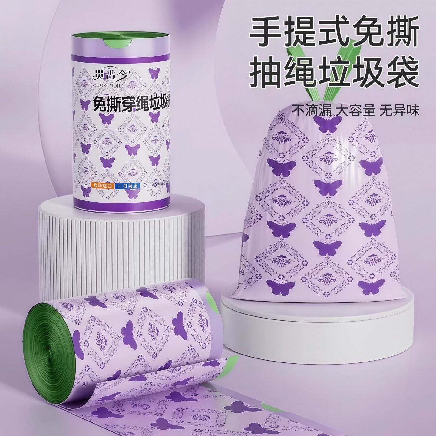 薰衣草免撕抽绳垃圾袋家用加厚手提式厨房塑料袋办公室清洁袋特厚