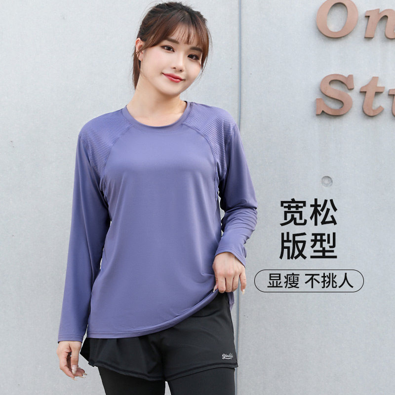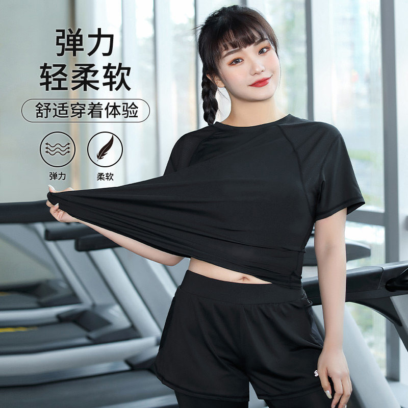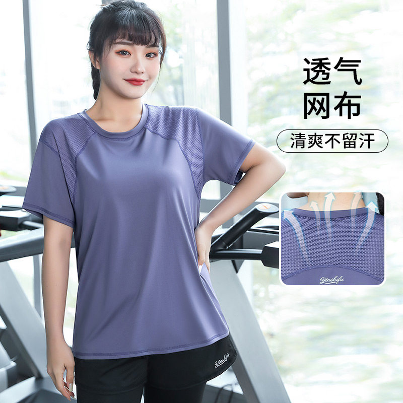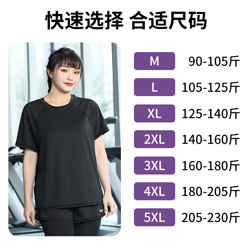 加肥加大码瑜伽服套装女运动上衣胖mm跑步健身衣短袖训练服速干衣