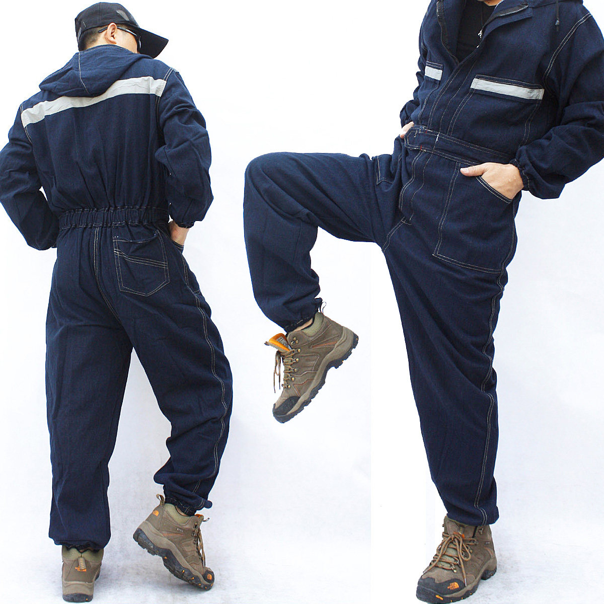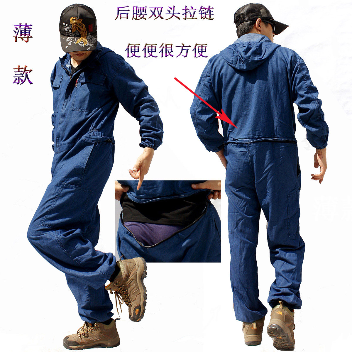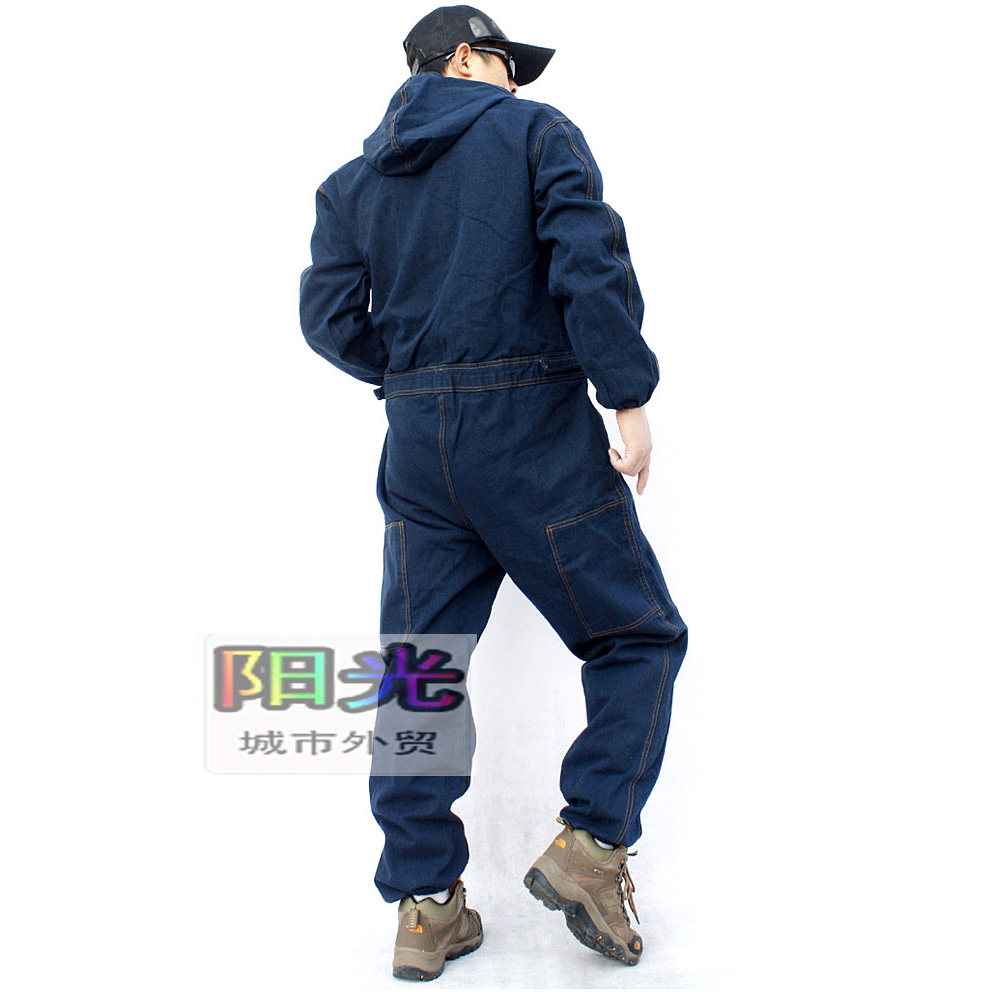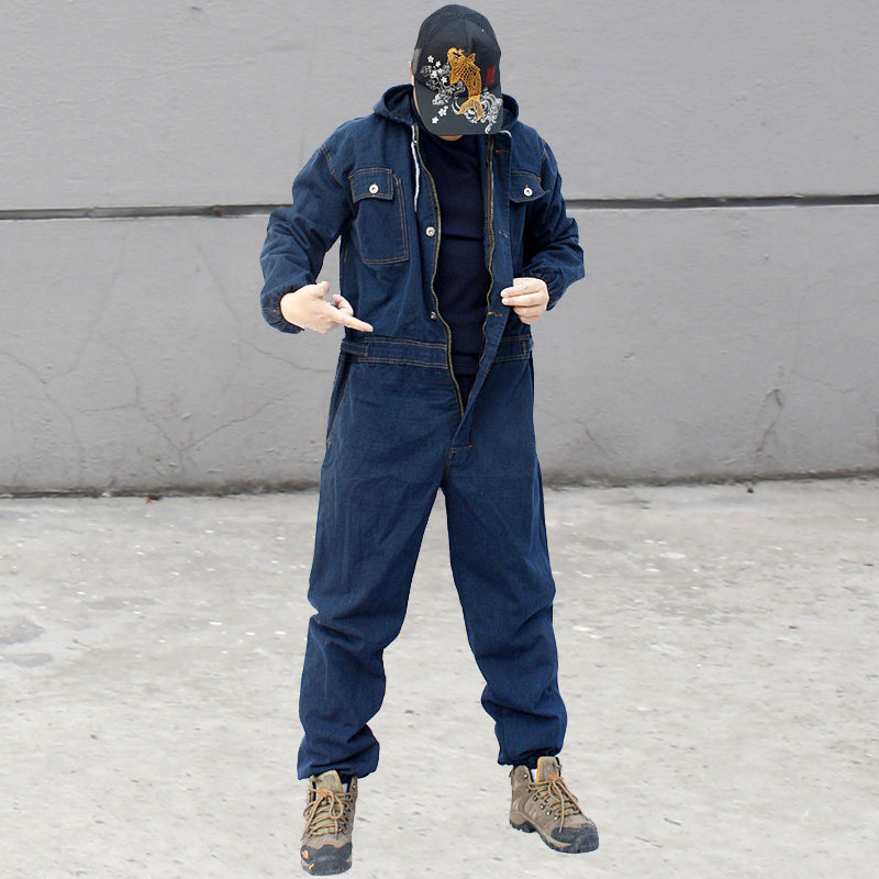 加厚带帽连体工作服牛仔套装男汽修劳保工装防尘电焊机修宽松大码