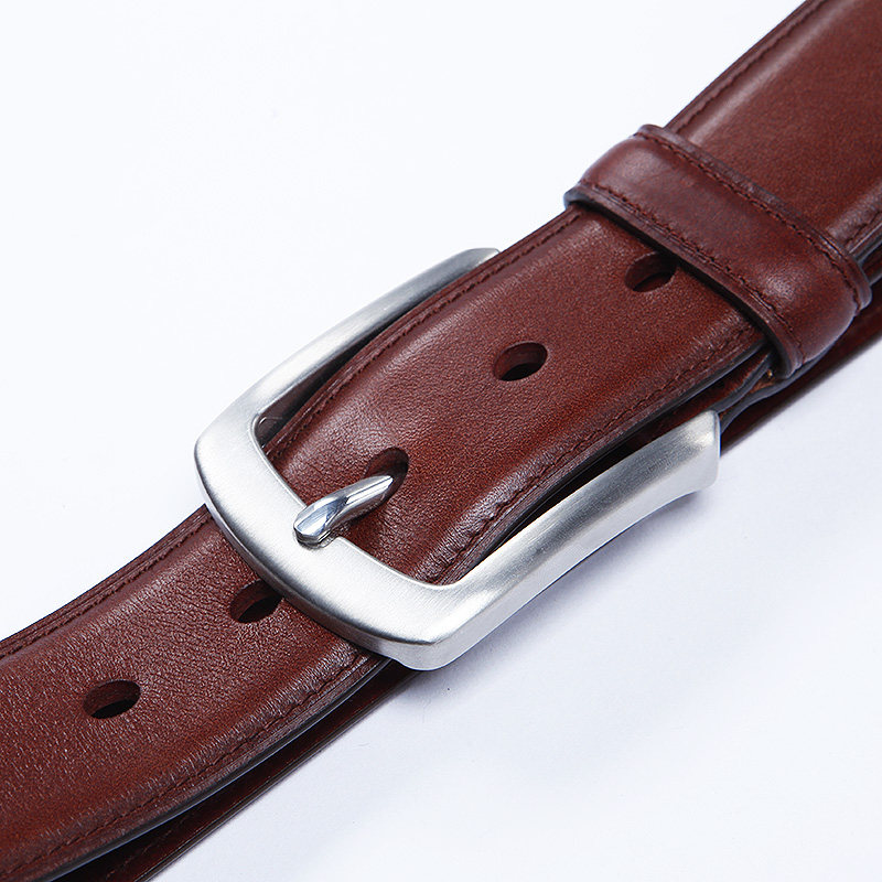 蓝皮具男式休闲商务真皮带男士纯牛皮腰带车线裤带钢头针扣粗3.8