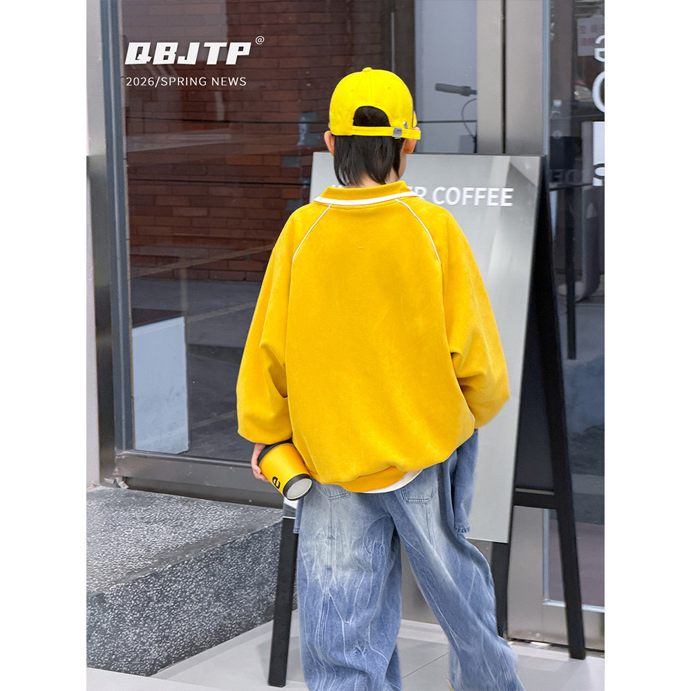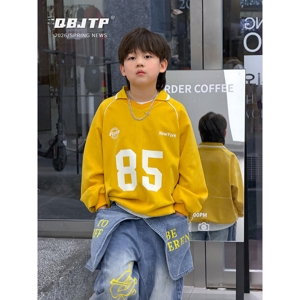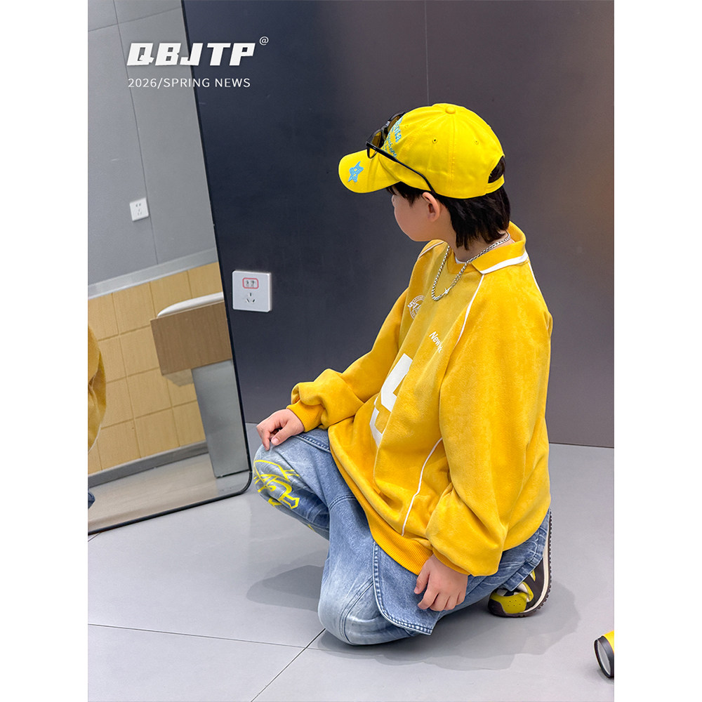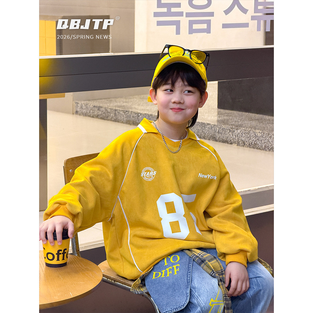 Q宝家童装 男童卫衣2026春季新款儿童polo领长袖中大童T恤上衣潮