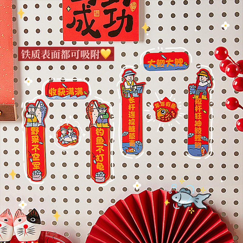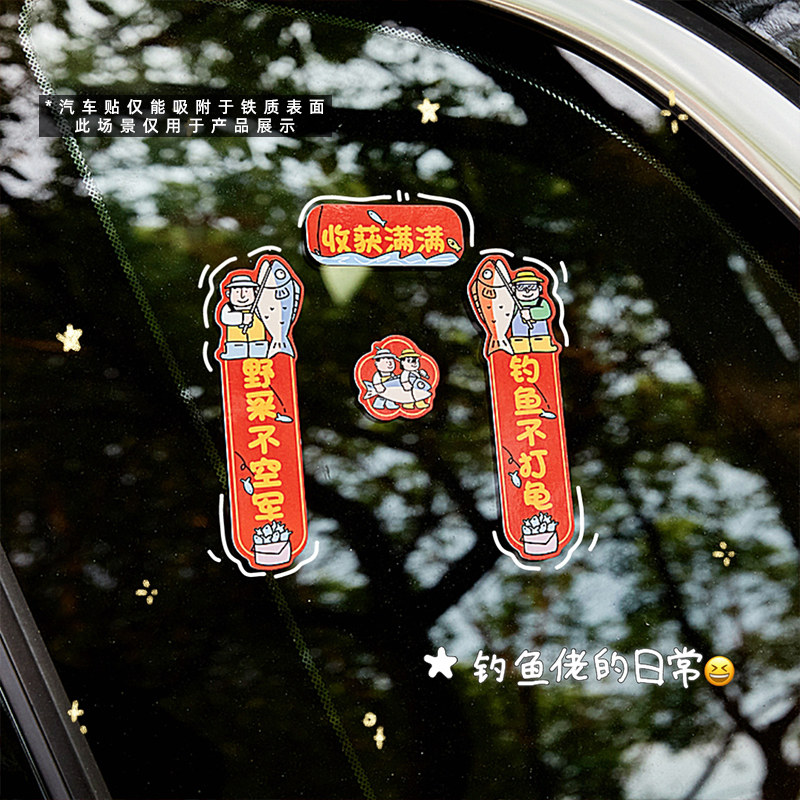 2026新款钓鱼磁吸汽车贴对联春联马年纸个性创意搞笑汽车装饰贴画
