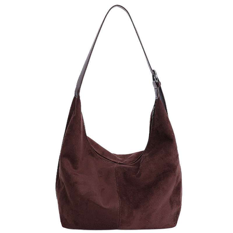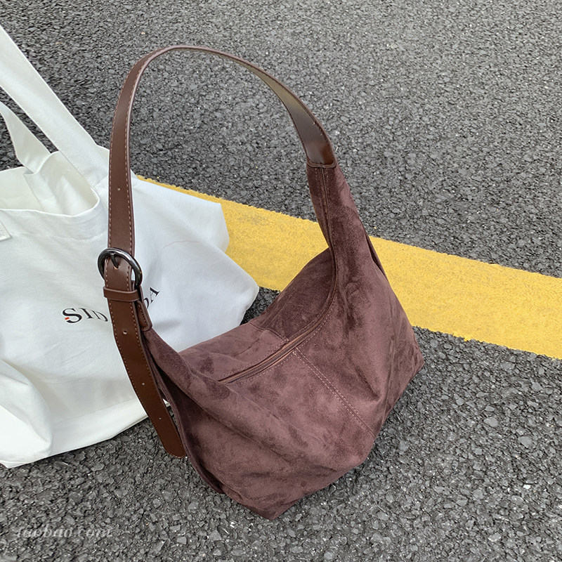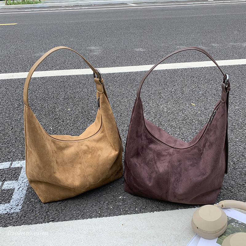 休闲复古麂皮绒包包女式2026新款轻便百搭单肩斜挎包大容量托特包