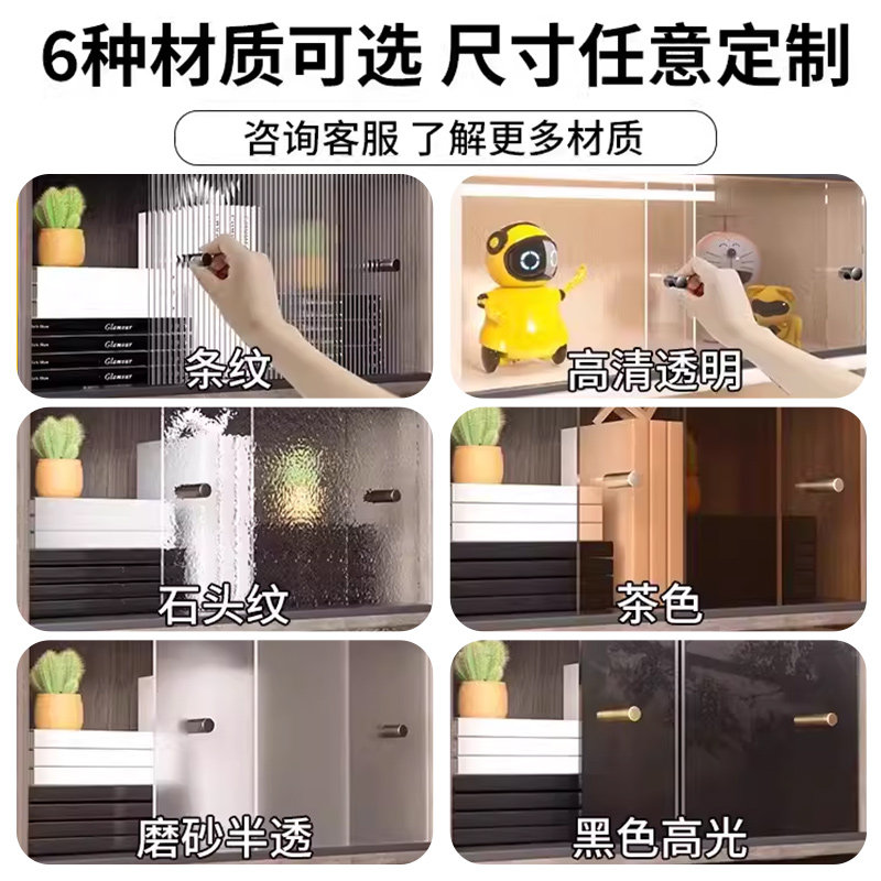 厨房橱柜门简易小柜子门自装推拉门玻璃移门亚克力柜门定制免打孔