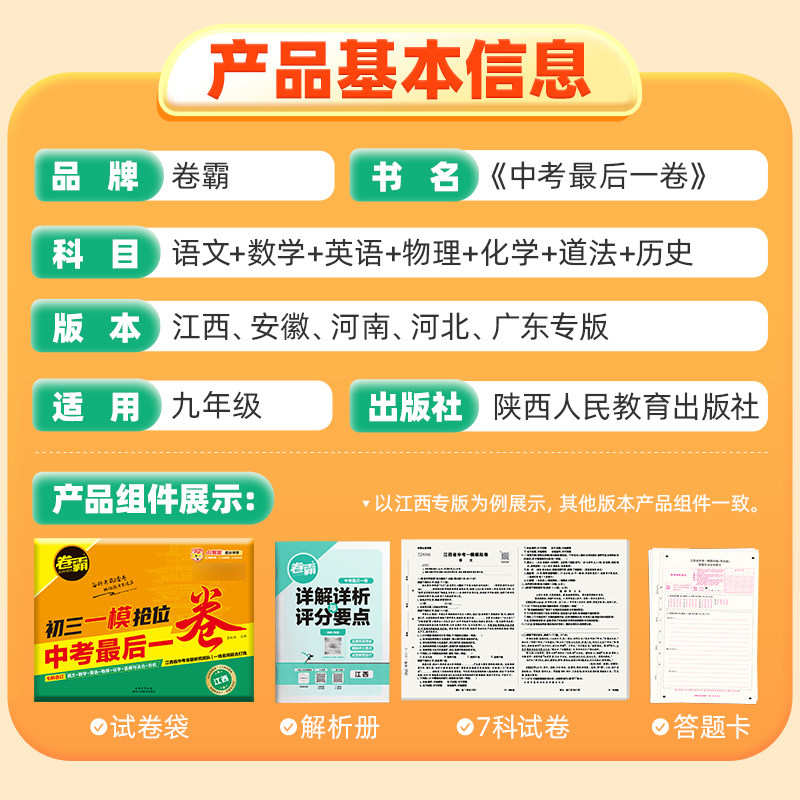 卷霸2026新版中考最后一卷江西安徽广东河北河南地区专版语文数学英语物理化学历史道德与法治初三九年级复习冲刺高分必刷试卷zj