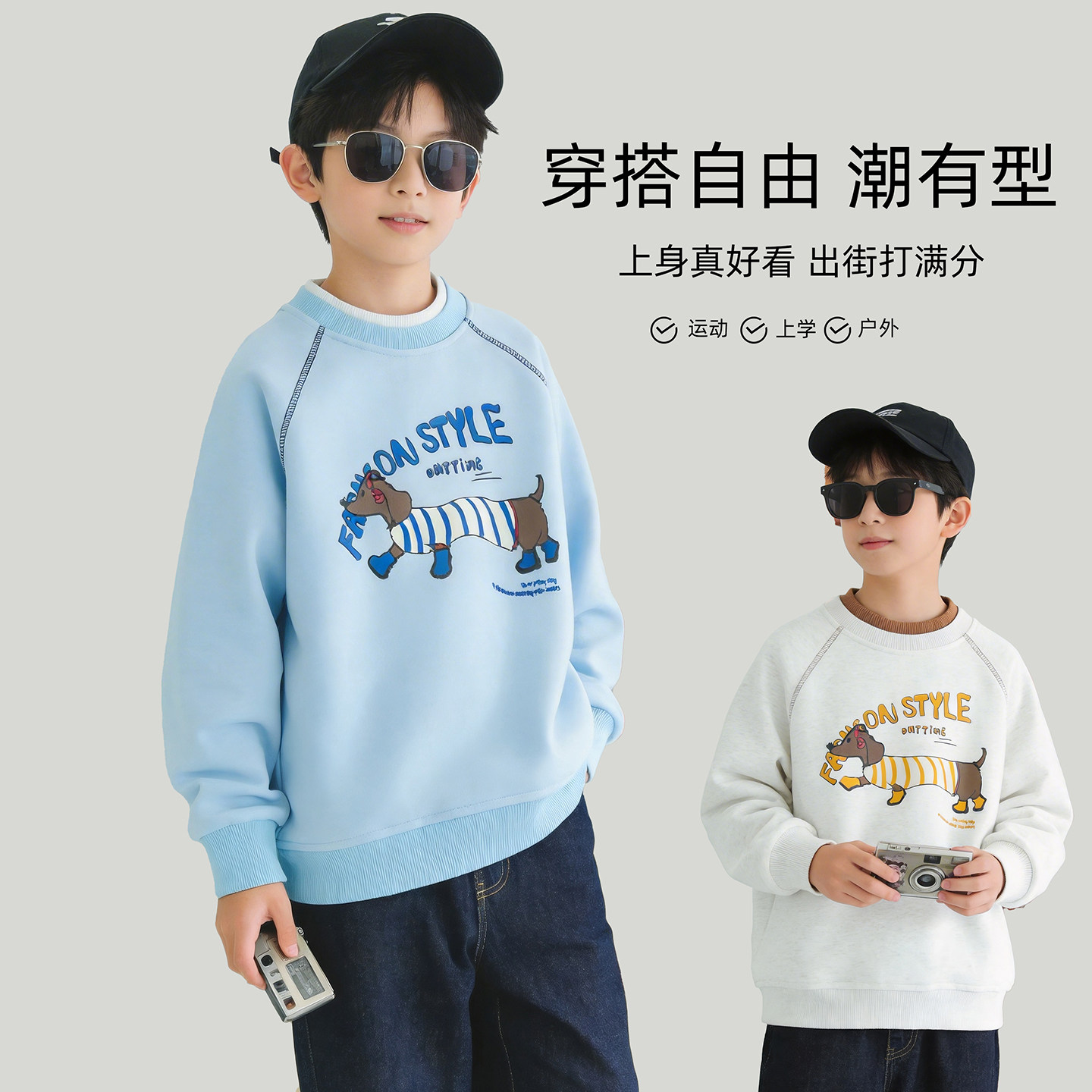 男童卫衣春装2026新款儿童打底衫上衣中大童春秋款假两件圆领衫
