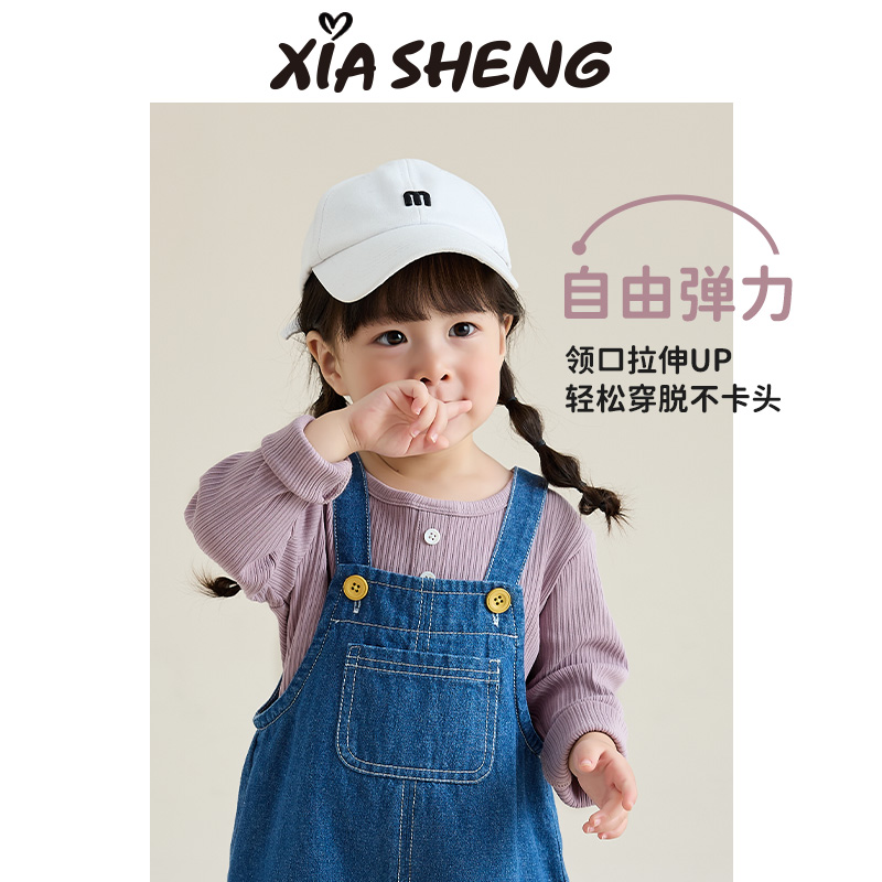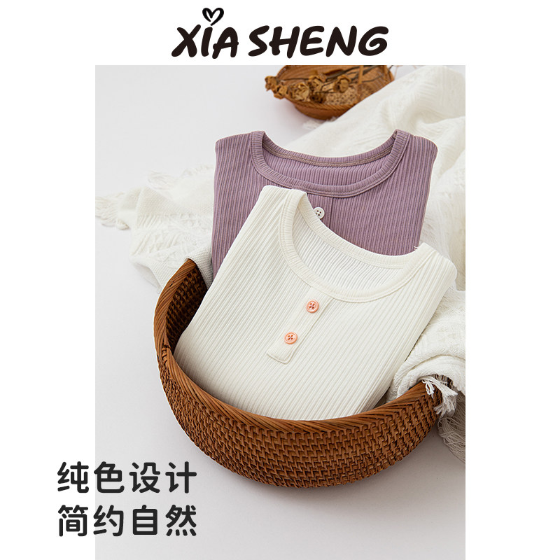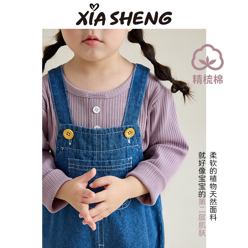 夏生 两粒扣小衫女孩百搭打底衫宝宝内搭上衣薄款T恤女童秋装新款