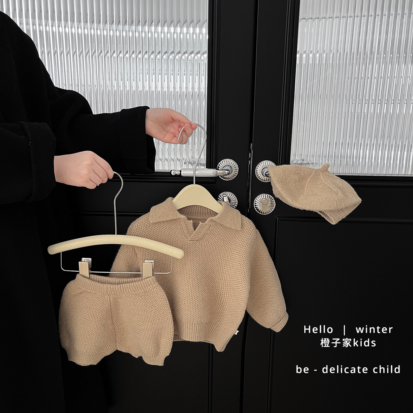 女宝宝冬季翻领毛衣套装女童韩版加厚保暖针织衫婴儿洋气宽松短裤