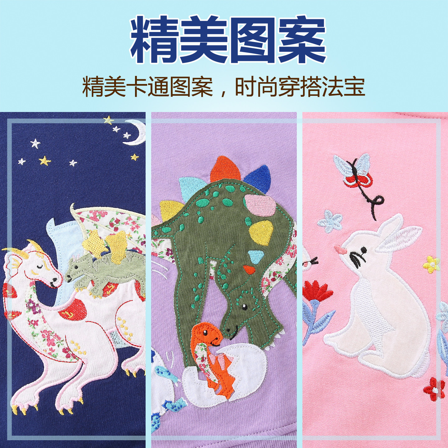 恐龙女童不加绒卫衣春秋纯棉卡通翼龙兔子女中童小童贴身内搭上衣