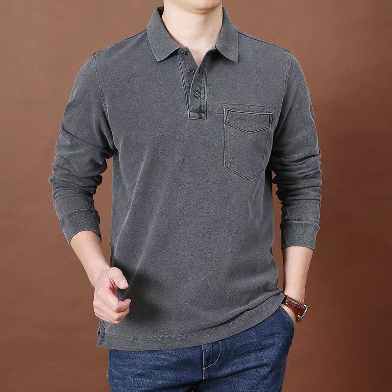 意邦奴秋季男士长袖纯色T恤休闲男装翻领男款上衣男珠地纯棉POLO