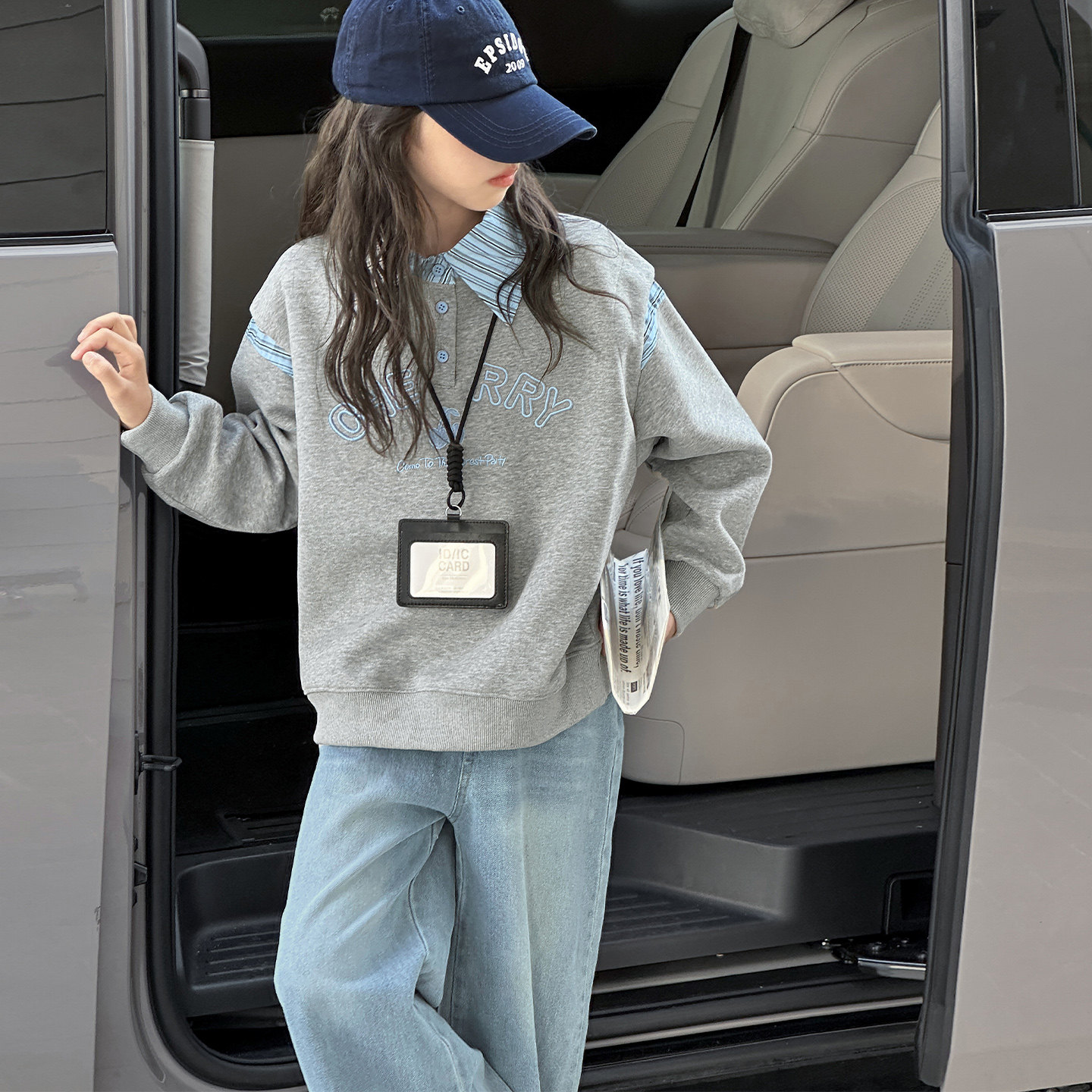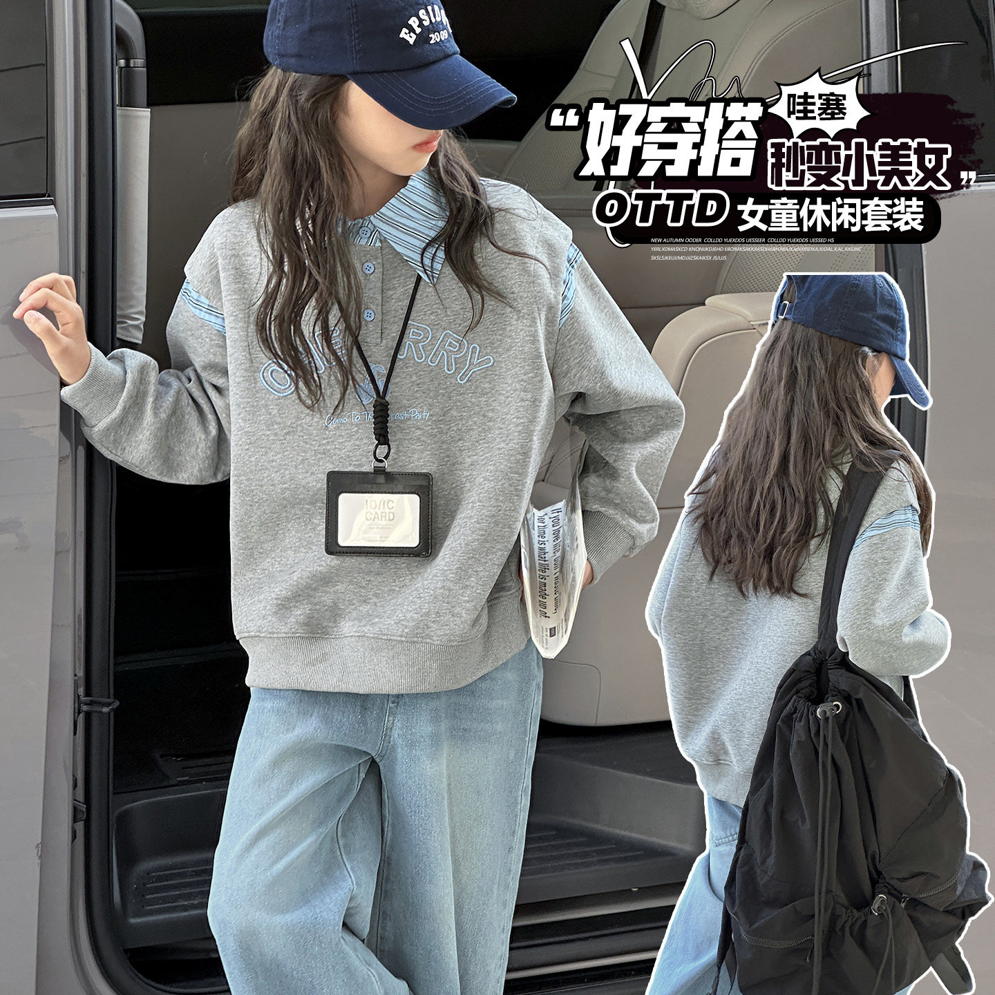 女童卫衣春秋套装2026新款洋气休闲卫衣牛仔裤中大童长袖上衣春装