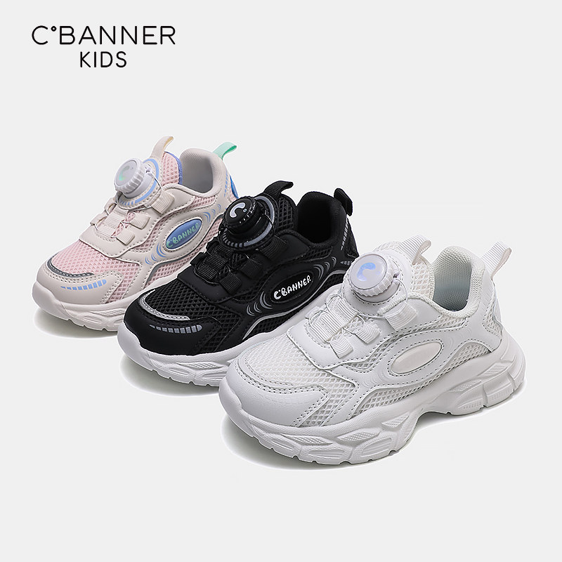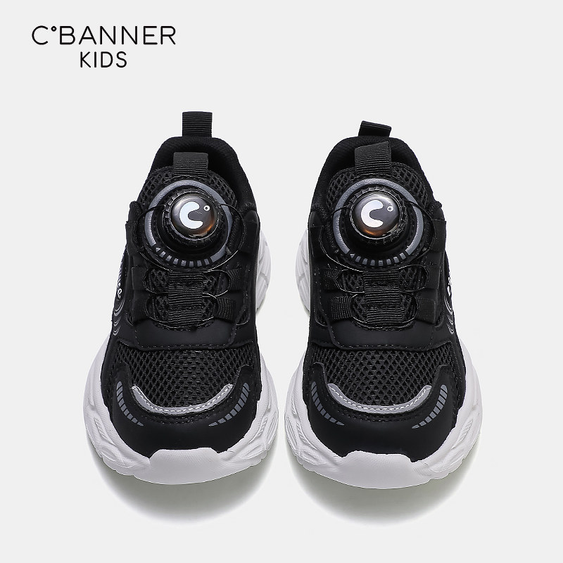 千百度男童运动鞋春季新款儿童黑色网面透气休闲鞋女童老爹鞋大童