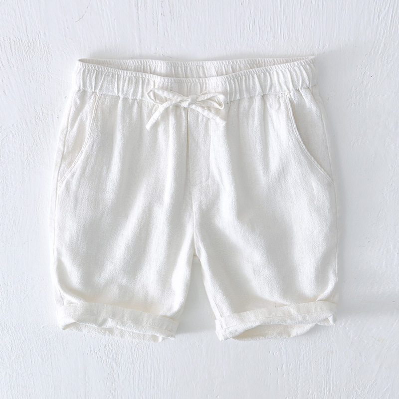 2026夏亚麻短裤男款夏季薄款棉麻中裤男士简约苎麻抽绳休闲五分裤