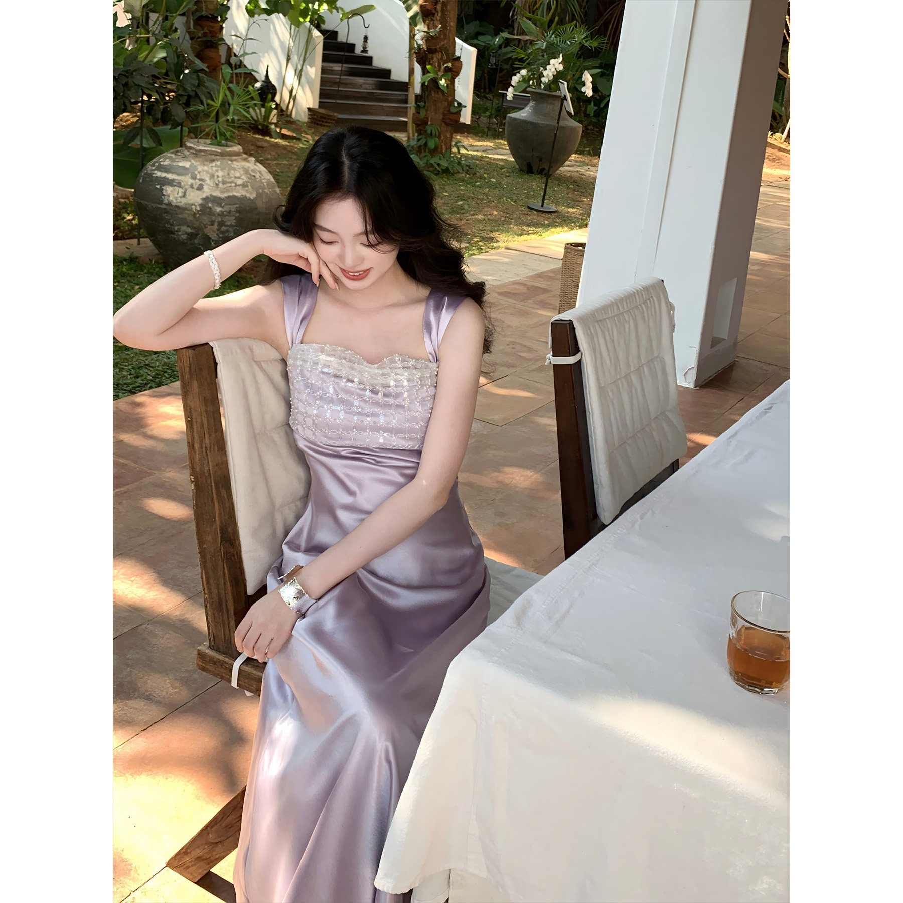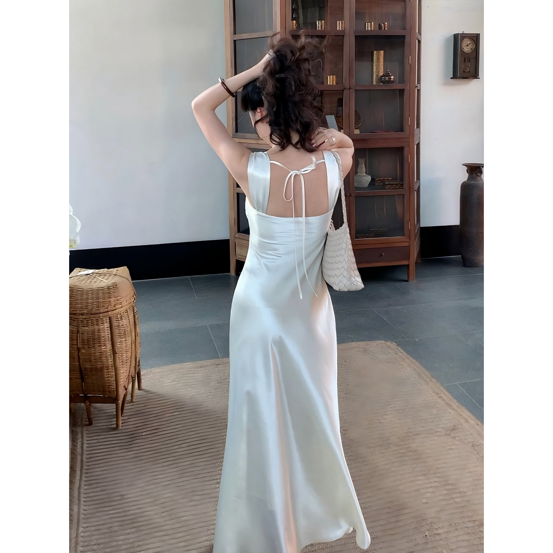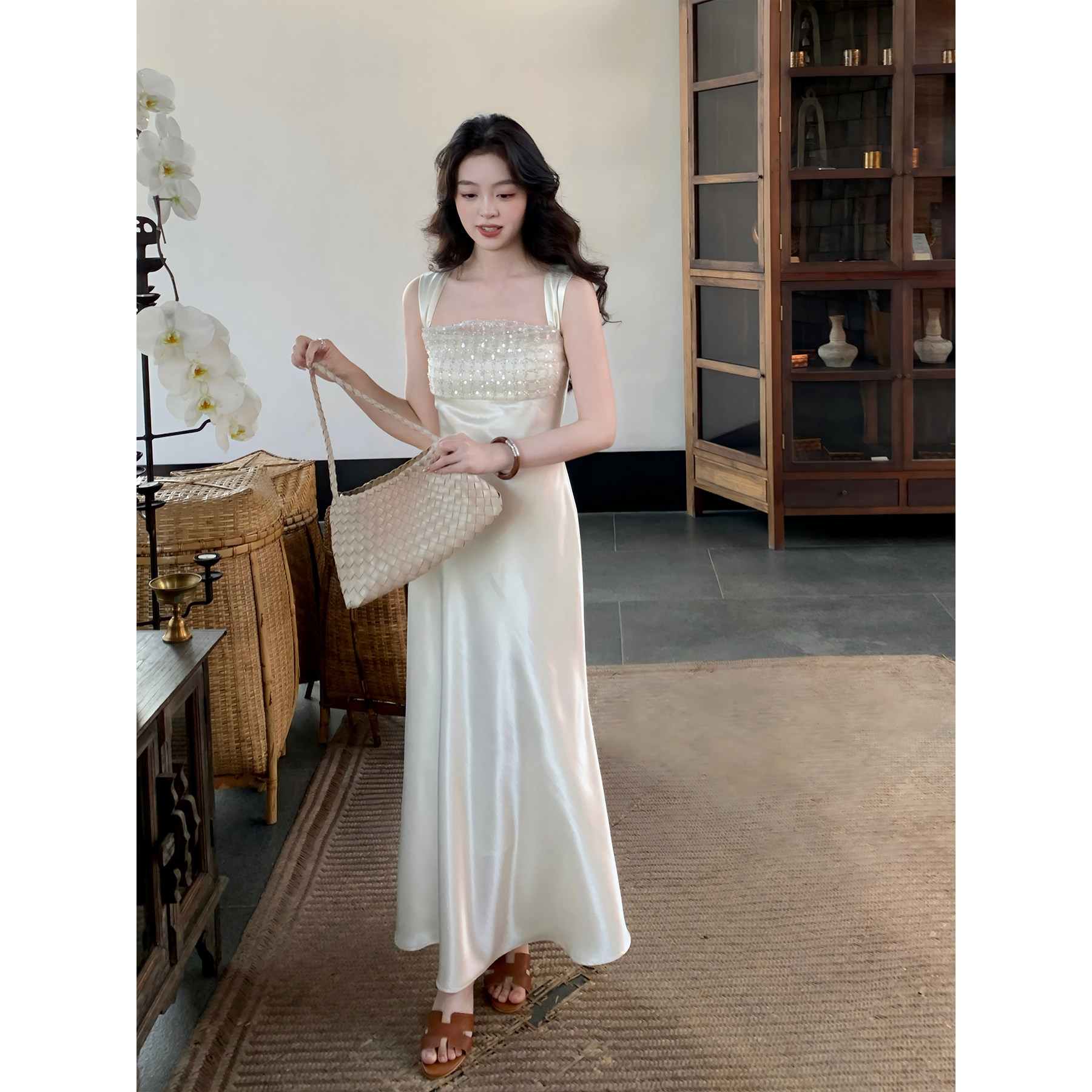 【风月】SYT自制 轻奢感缎面修身型吊带连衣裙高级钉珠长款鱼尾裙