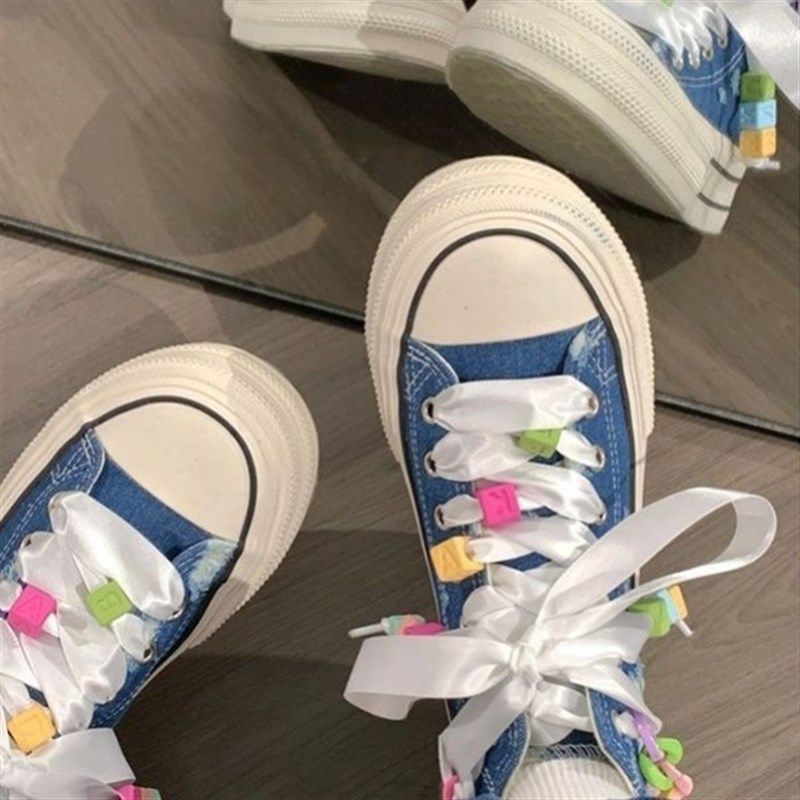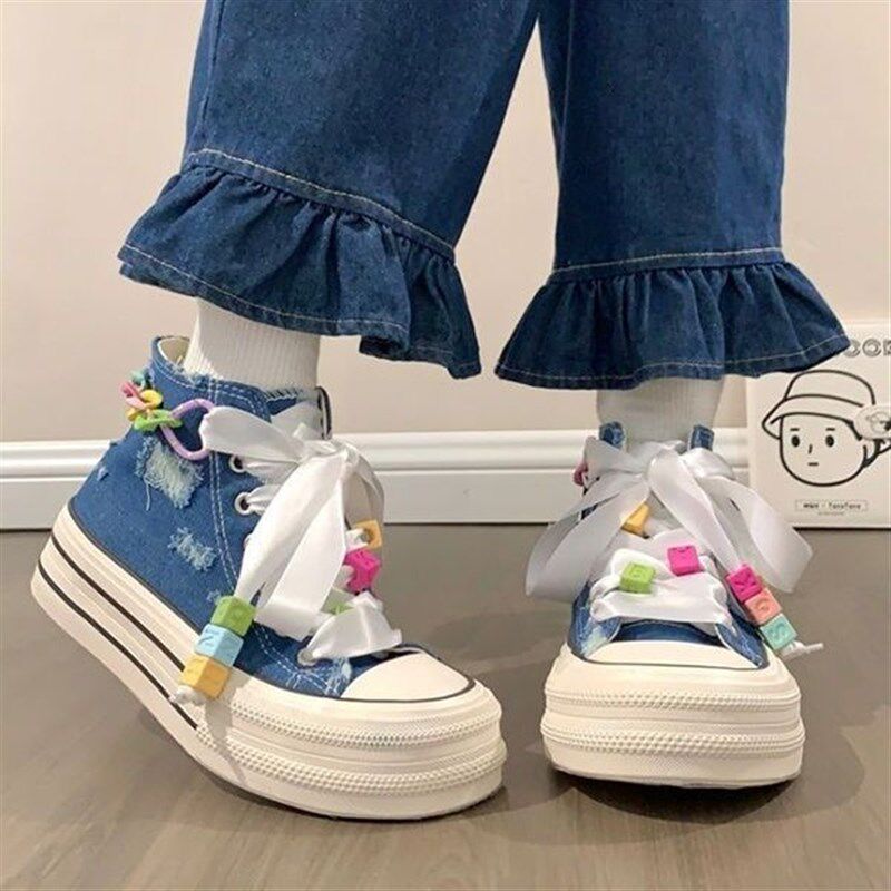 牛仔蓝高帮帆布鞋厚底增高2025夏天鞋子多巴胺配色休闲运动板鞋女