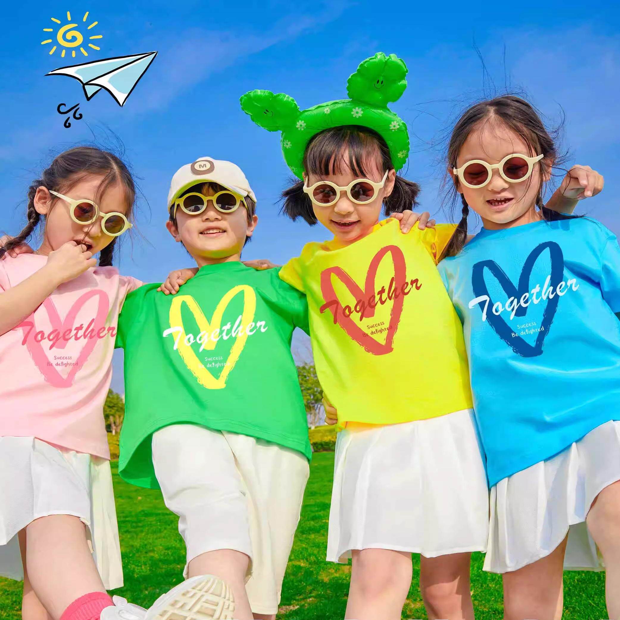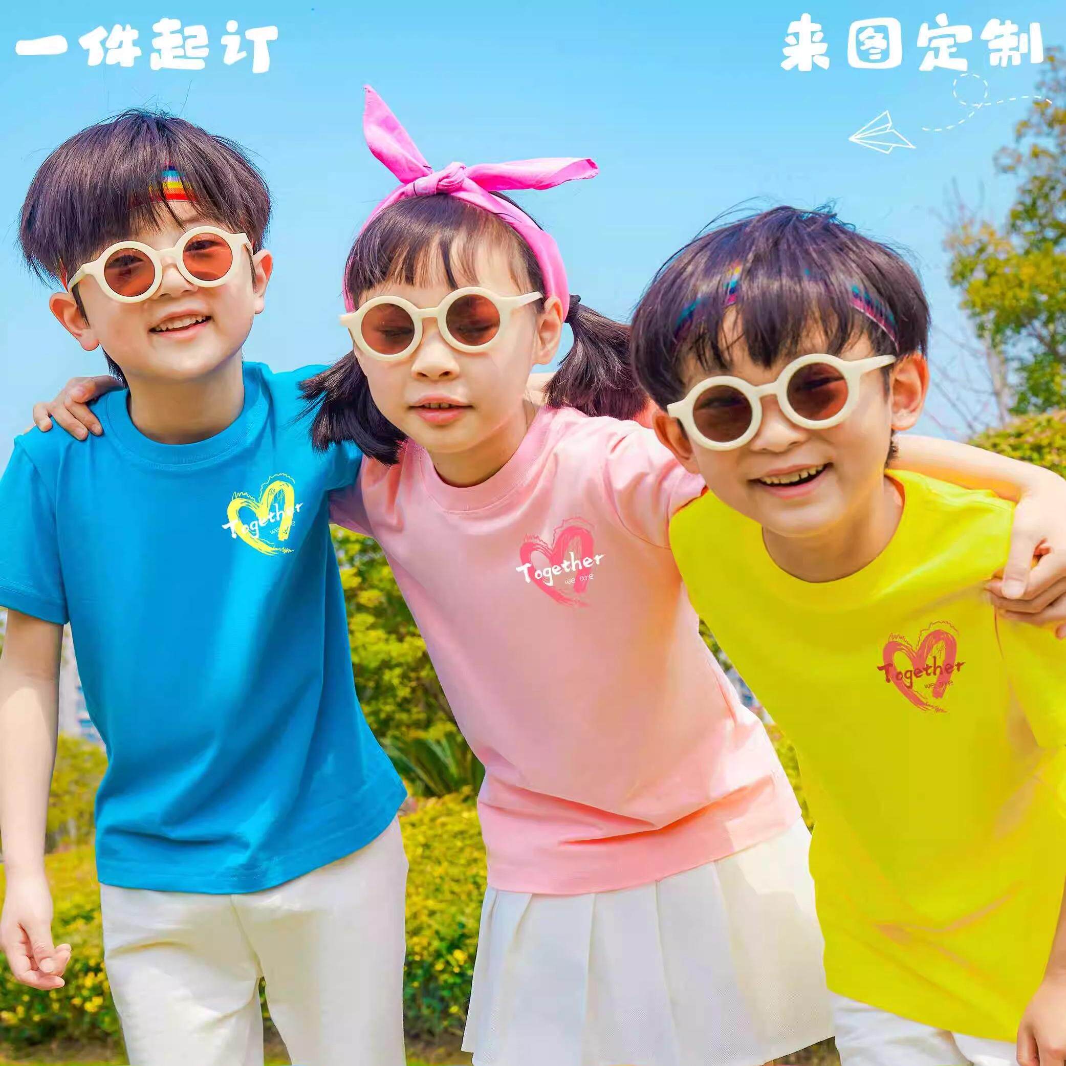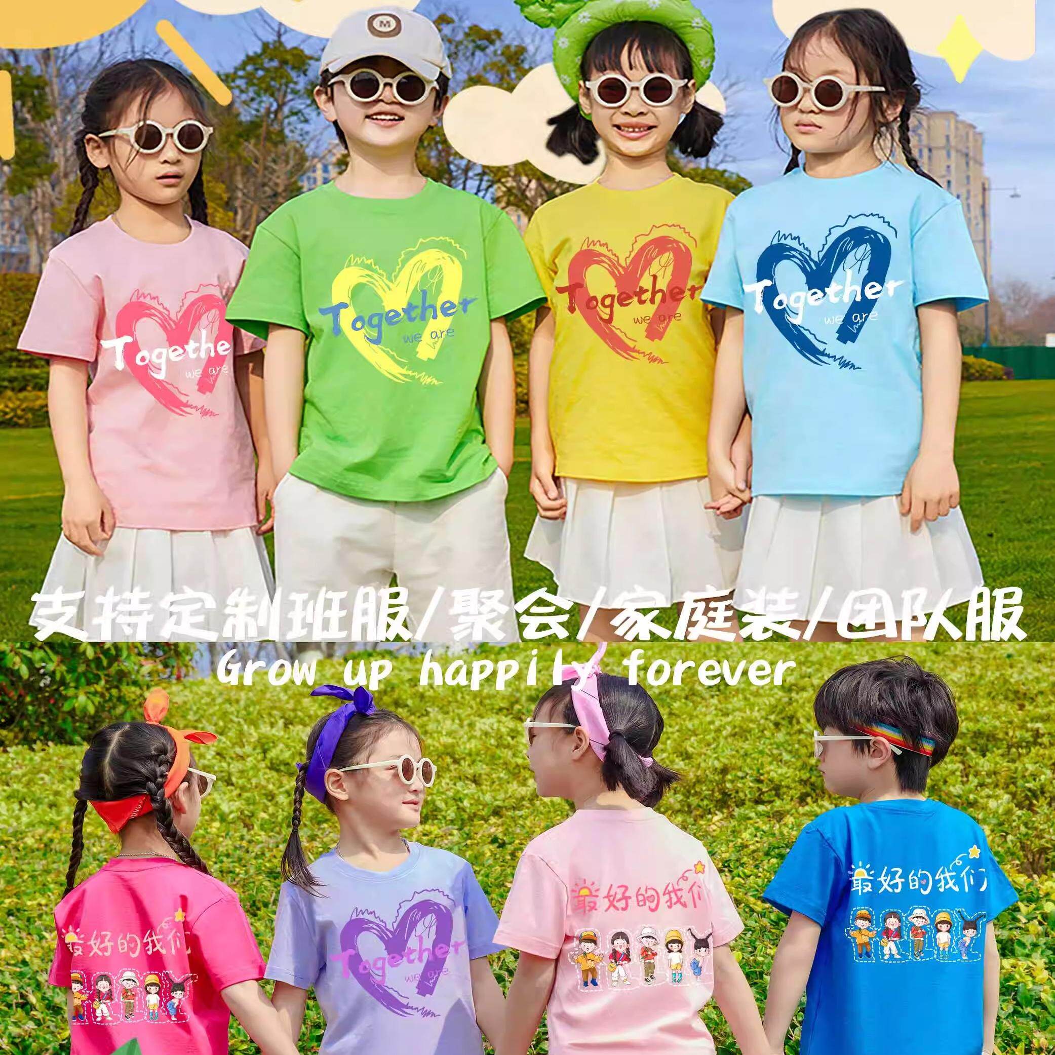 创意爱心亲子糖果色t恤幼儿园六一儿童节彩色短袖演出服定制班服