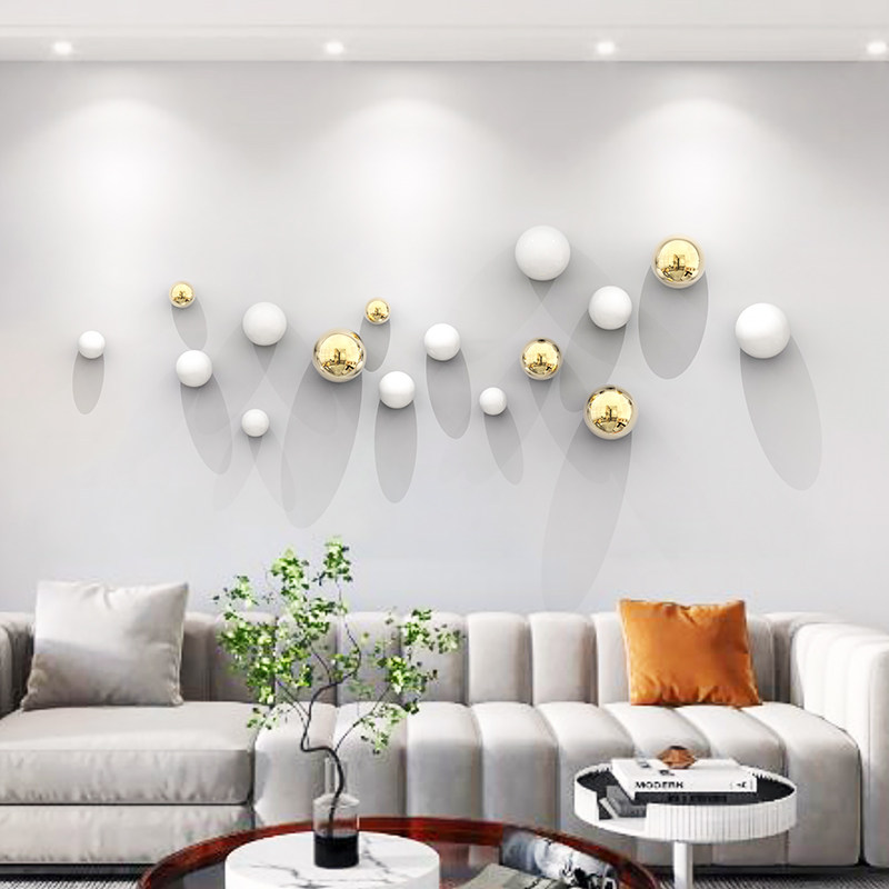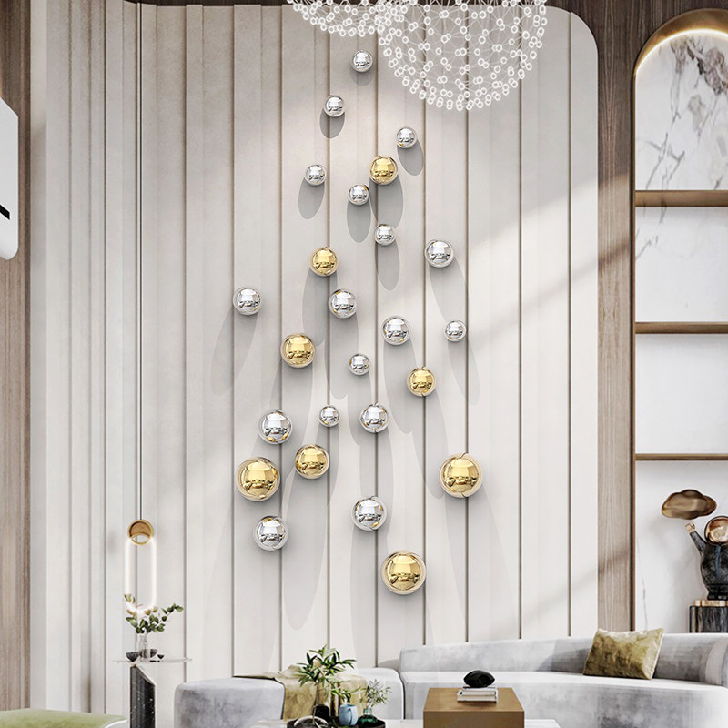 客厅墙上装饰仿不锈钢艺术圆球酒店餐厅壁挂饰品创意立体墙面装饰