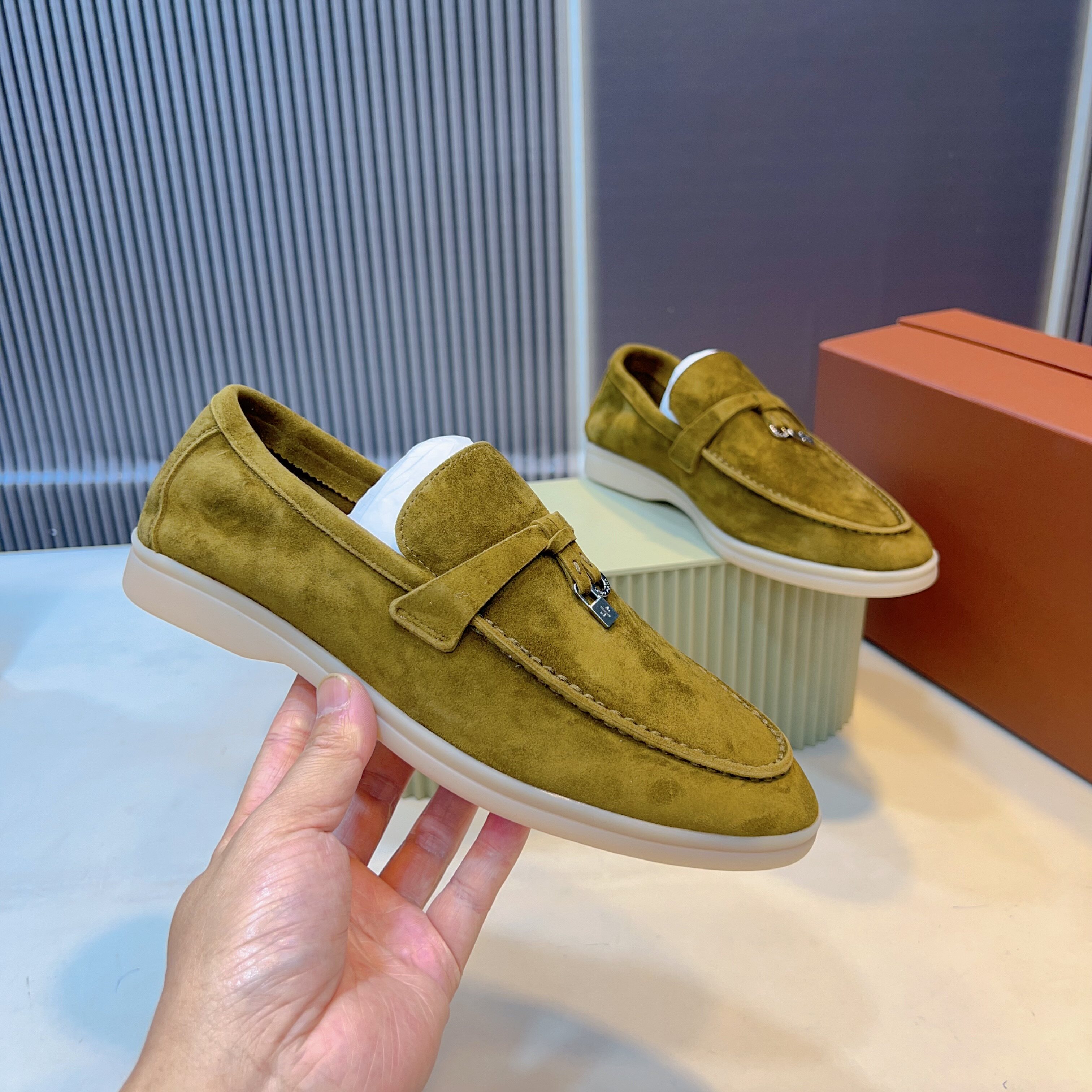 LP高级感豆豆鞋男软底一脚蹬反绒麂皮乐福鞋女老钱风真皮英伦单鞋