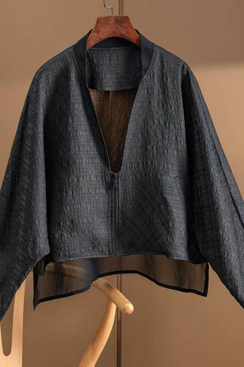 品牌专柜高端女装外贸原单清仓重磅真丝香云纱棒球服外套披肩女