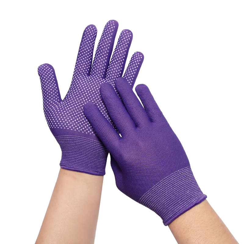 女士干活专用手套点胶防滑透气紫色尼龙劳保打包上班薄款弹力小号