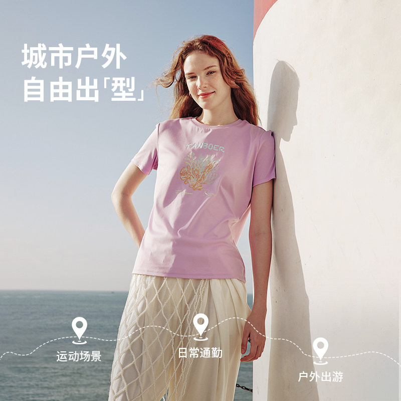 坦博尔2026春夏新款女款短袖T恤圆领运动休闲百搭宽松透气上衣