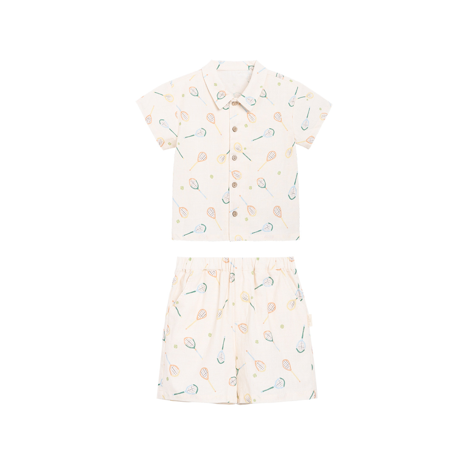 whitewheat儿童26夏季新款短袖男女童竹节棉衬衫宝宝印花短裤套装