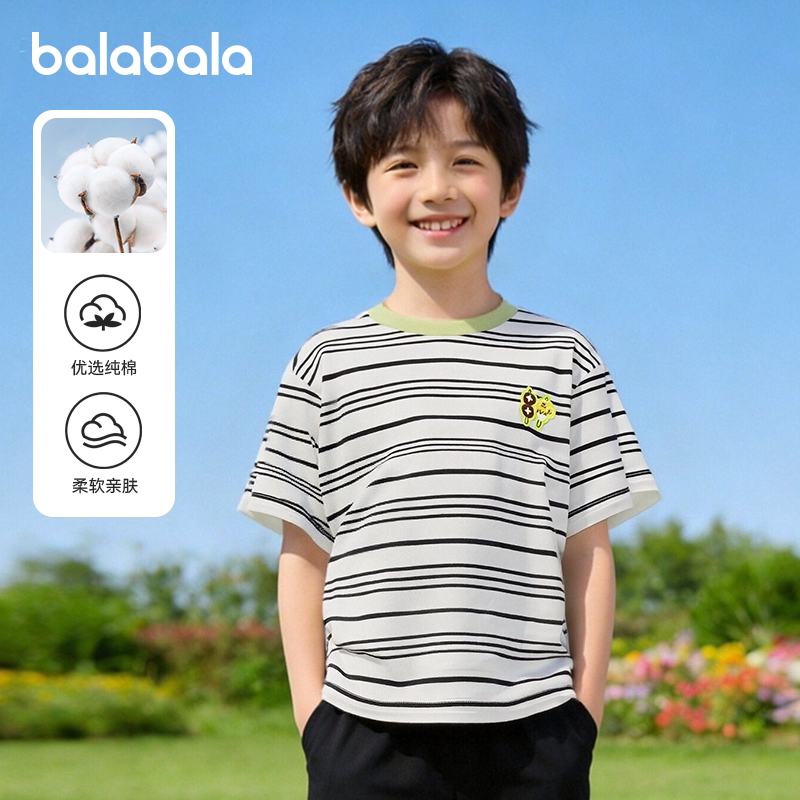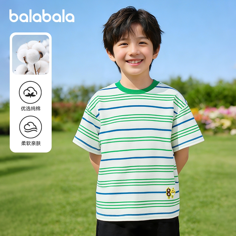 巴拉巴拉宝宝短袖t恤男童女童纯棉上衣2026新款夏季童装儿童条纹t