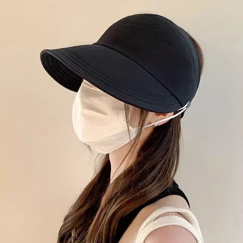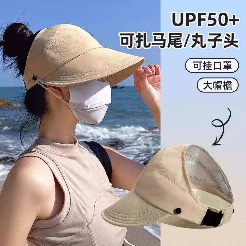 春夏款网红空顶鸭舌帽女升级版可挂口罩户外遮阳帽薄款速干防晒帽
