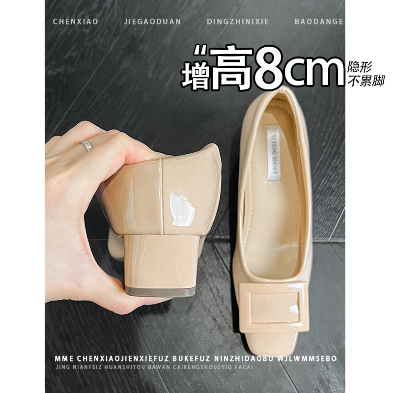 不累脚!隐形内增高8CM2026春夏新款小个子方扣粗跟玛丽珍单鞋女