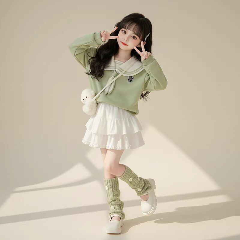 女童韩系学院风海军领长袖套装春季2026新款女大童洋气时髦连衣裙