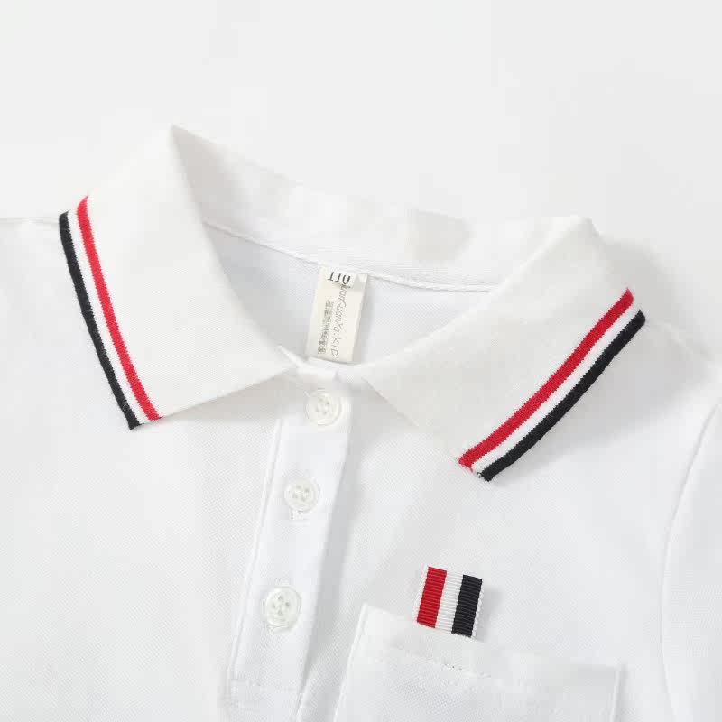 女童TBpolo衫2023夏韩版男童薄款翻领短袖学院风百搭衬衫学生上衣