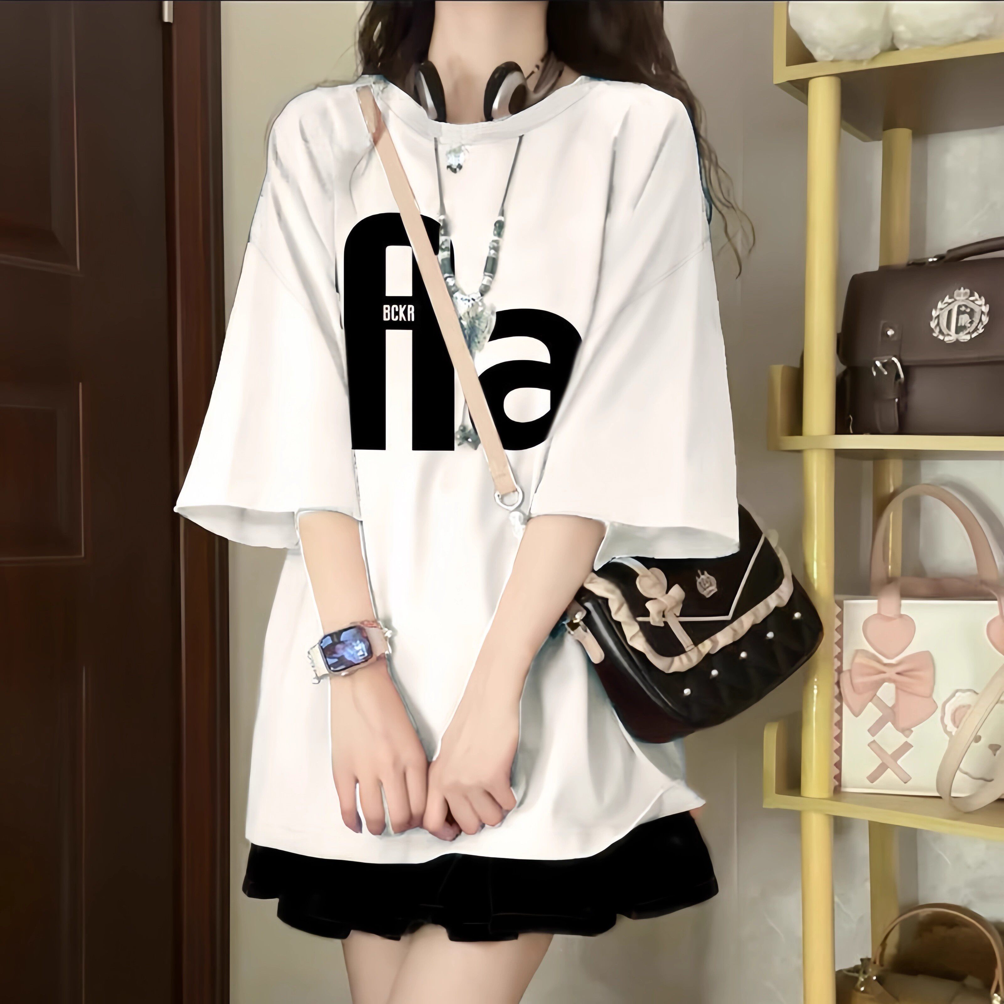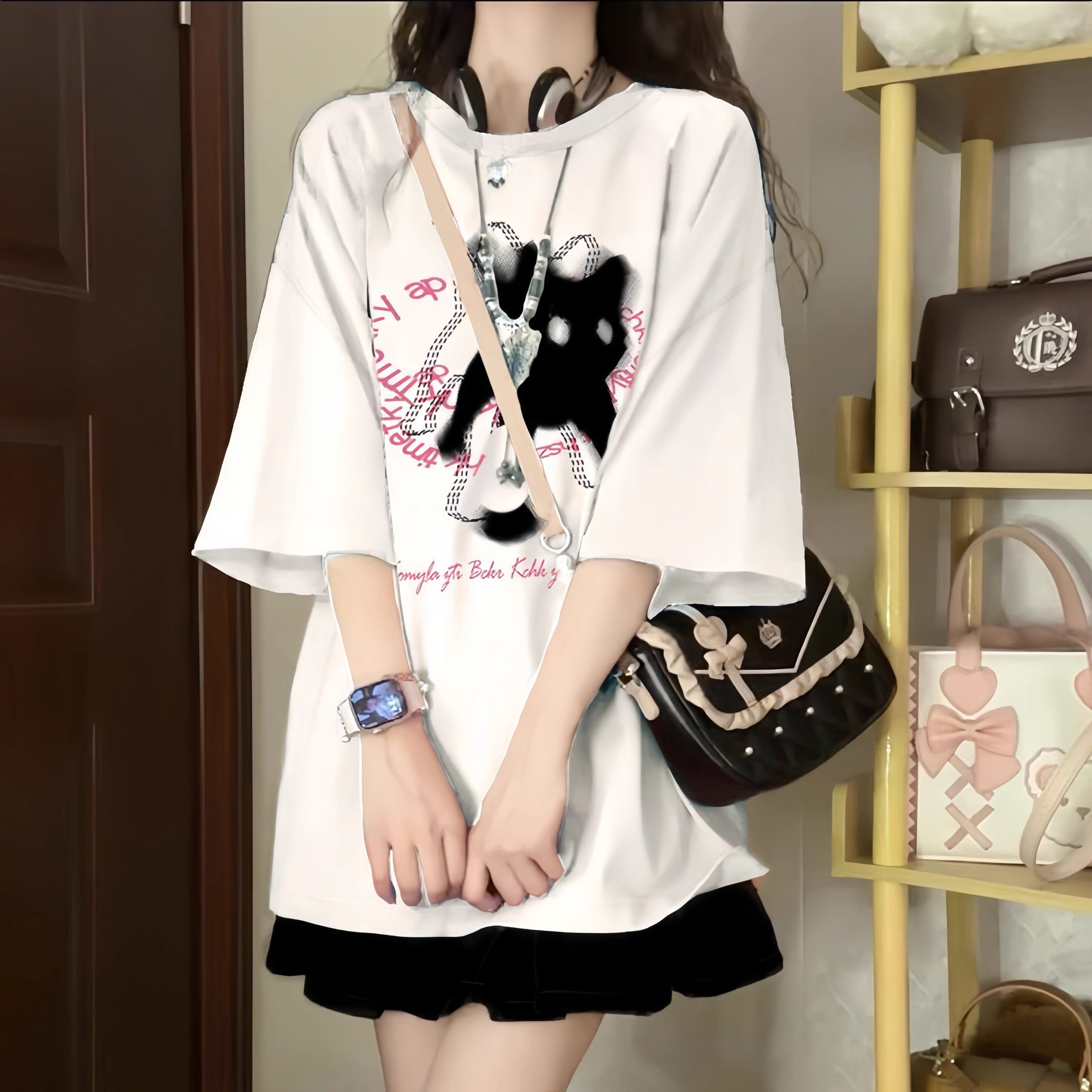 美式黑色学院风短袖t恤女大童夏装2025初中高中学生宽松半袖上衣