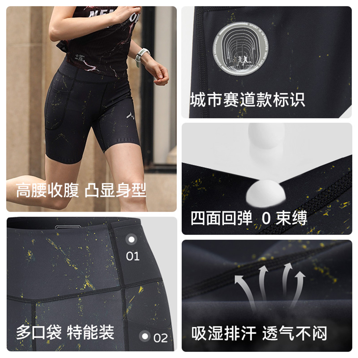 NP能跑男女马拉松跑步精英量子黑紧身短裤印花弹力五分裤飞跃3.0