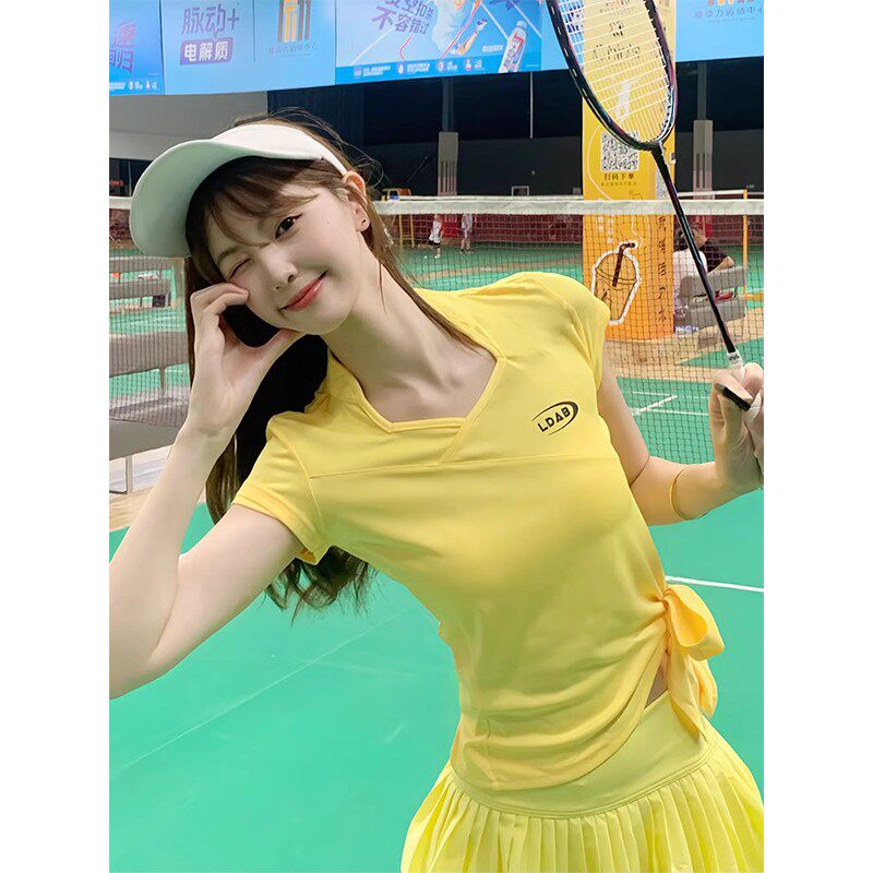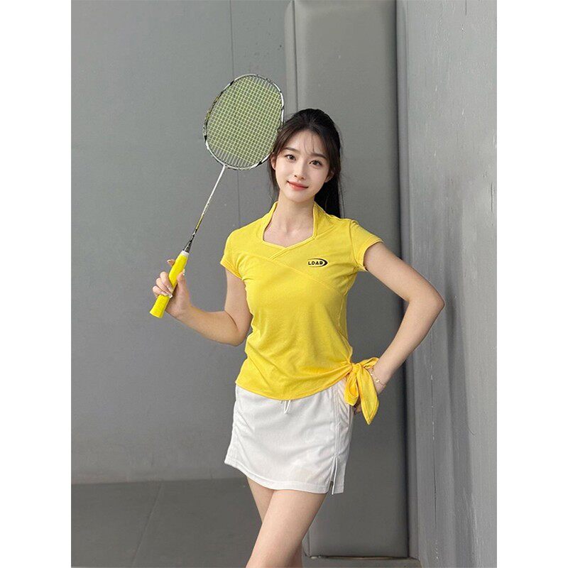 临典黄色羽毛球服运动套装女2026新款高颜值大赛速干吸汗短袖裙子