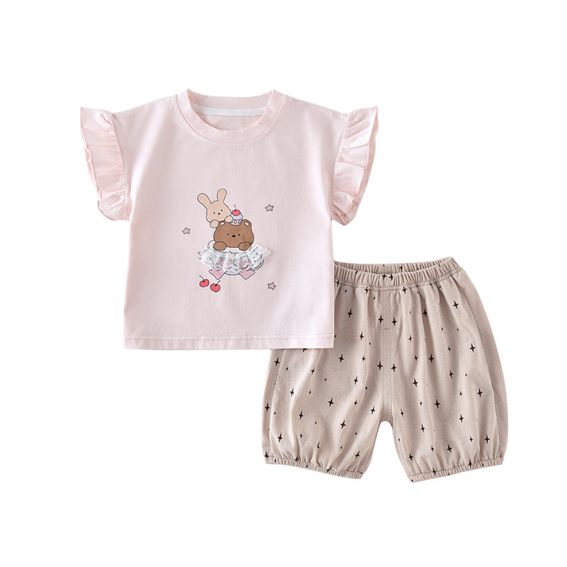 波步女宝宝套装夏装2026新款女童短袖短裤两件套小童夏季薄款衣服