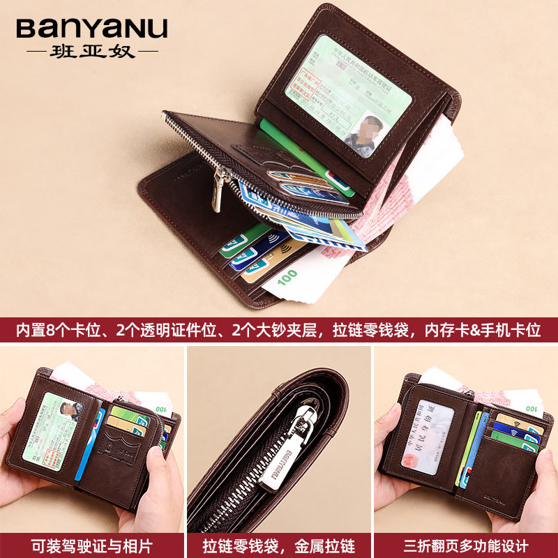 时尚钱包男真皮短款2025新款大容量多功能牛皮钱夹驾驶证卡包一体