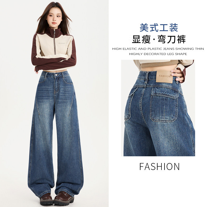 2026年春夏季新款镰刀牛仔裤女小个子显高宽松垂感百搭阔腿弯刀裤